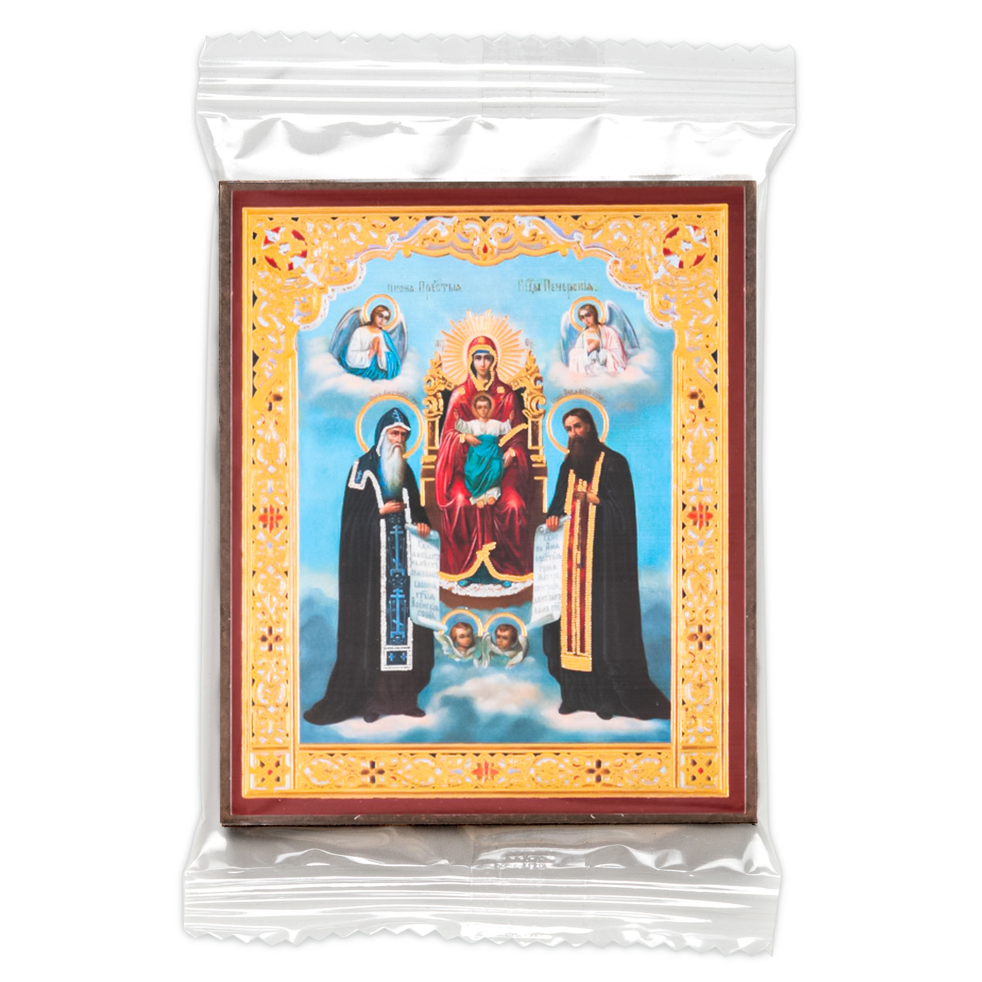 Икона на деревянном планшете 6х9 двойное тиснение, аннотация, упаковка Киево-Печерская БМ
