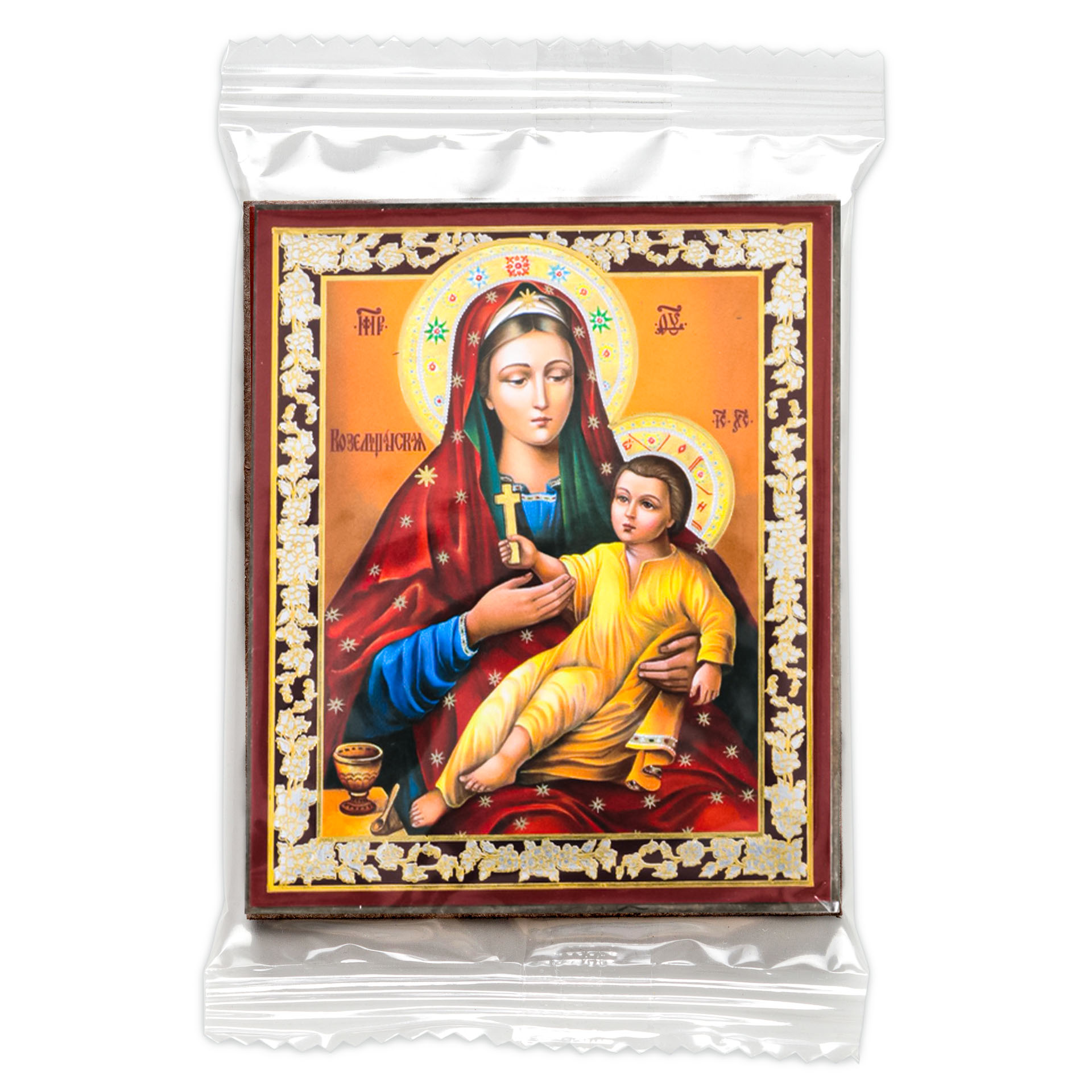 Икона на деревянном планшете 6х9 двойное тиснение, аннотация, упаковка Козельщанская БМ