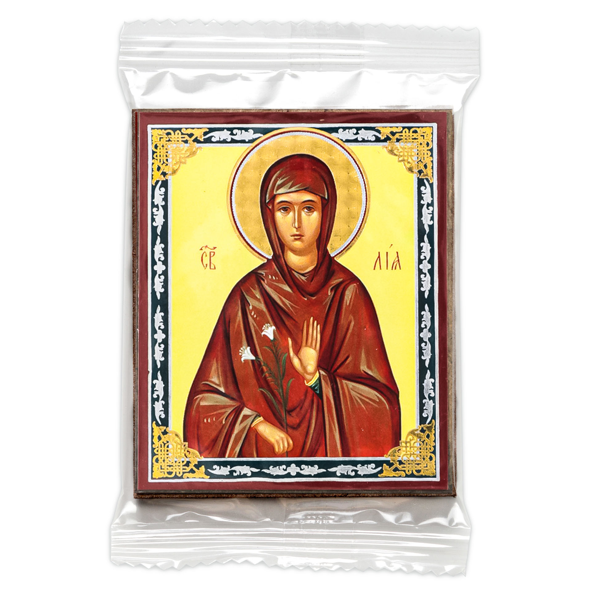 Икона на деревянном планшете 6х9 двойное тиснение, аннотация, упаковка Лия св.