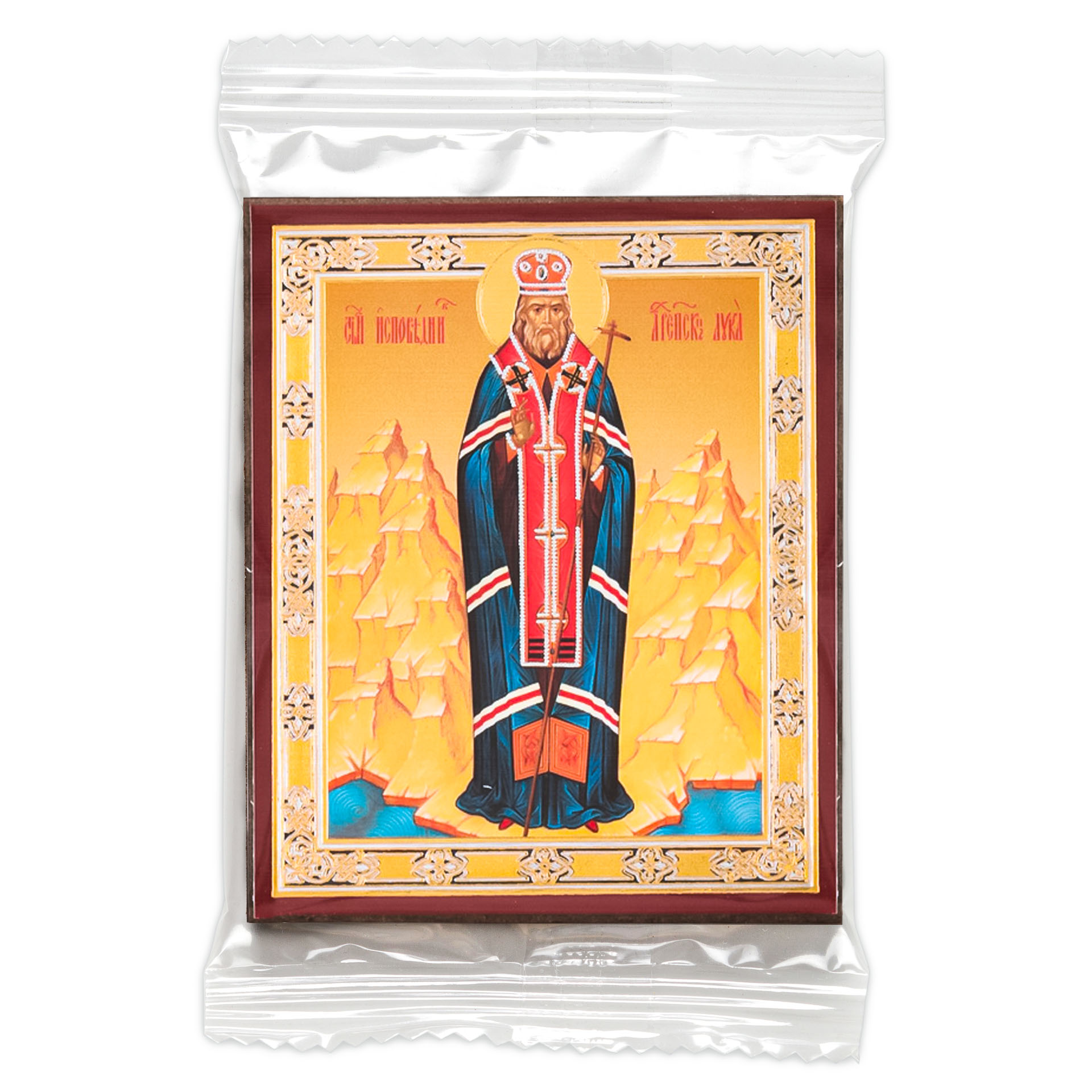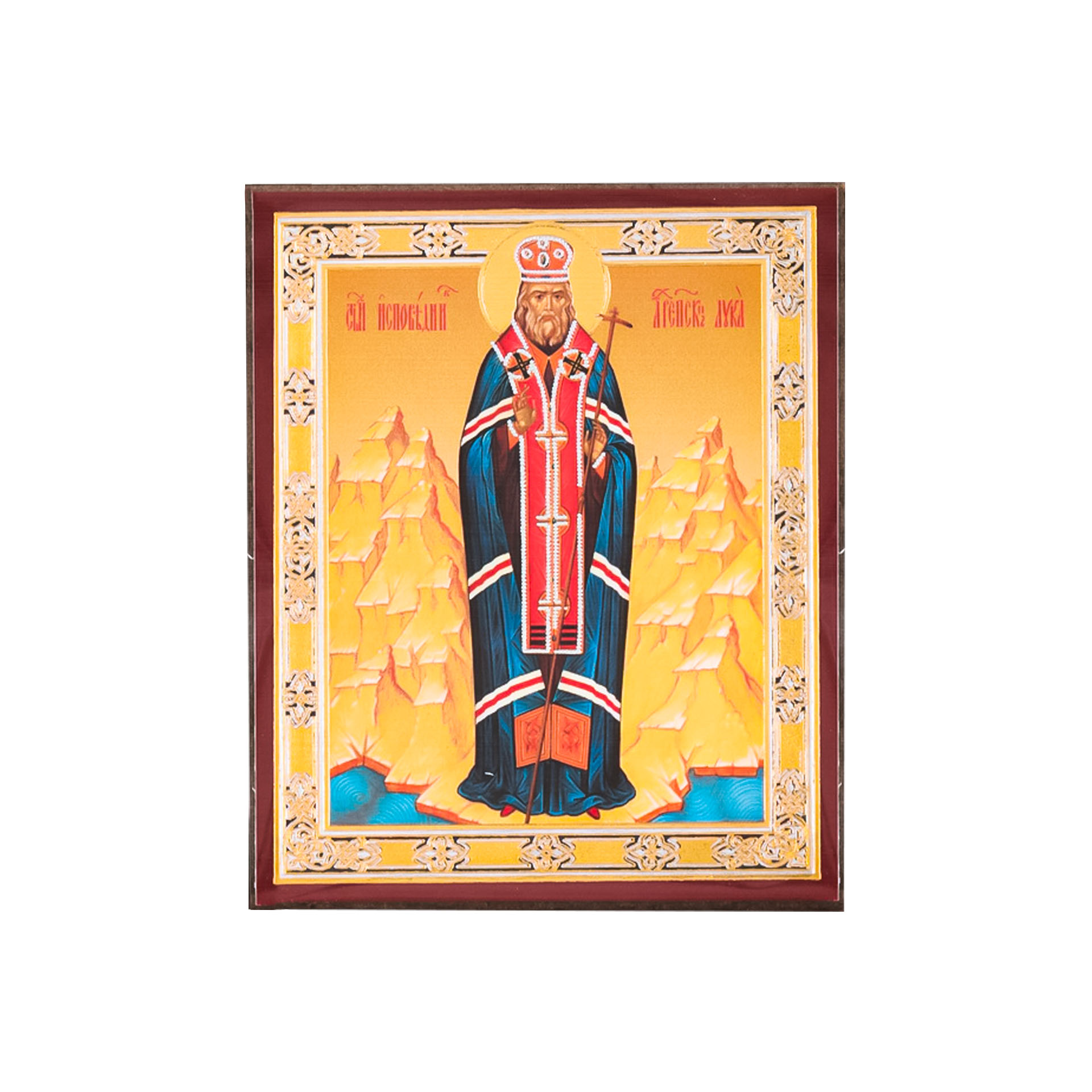 Икона на деревянном планшете 6х9 двойное тиснение, аннотация, упаковка Лука