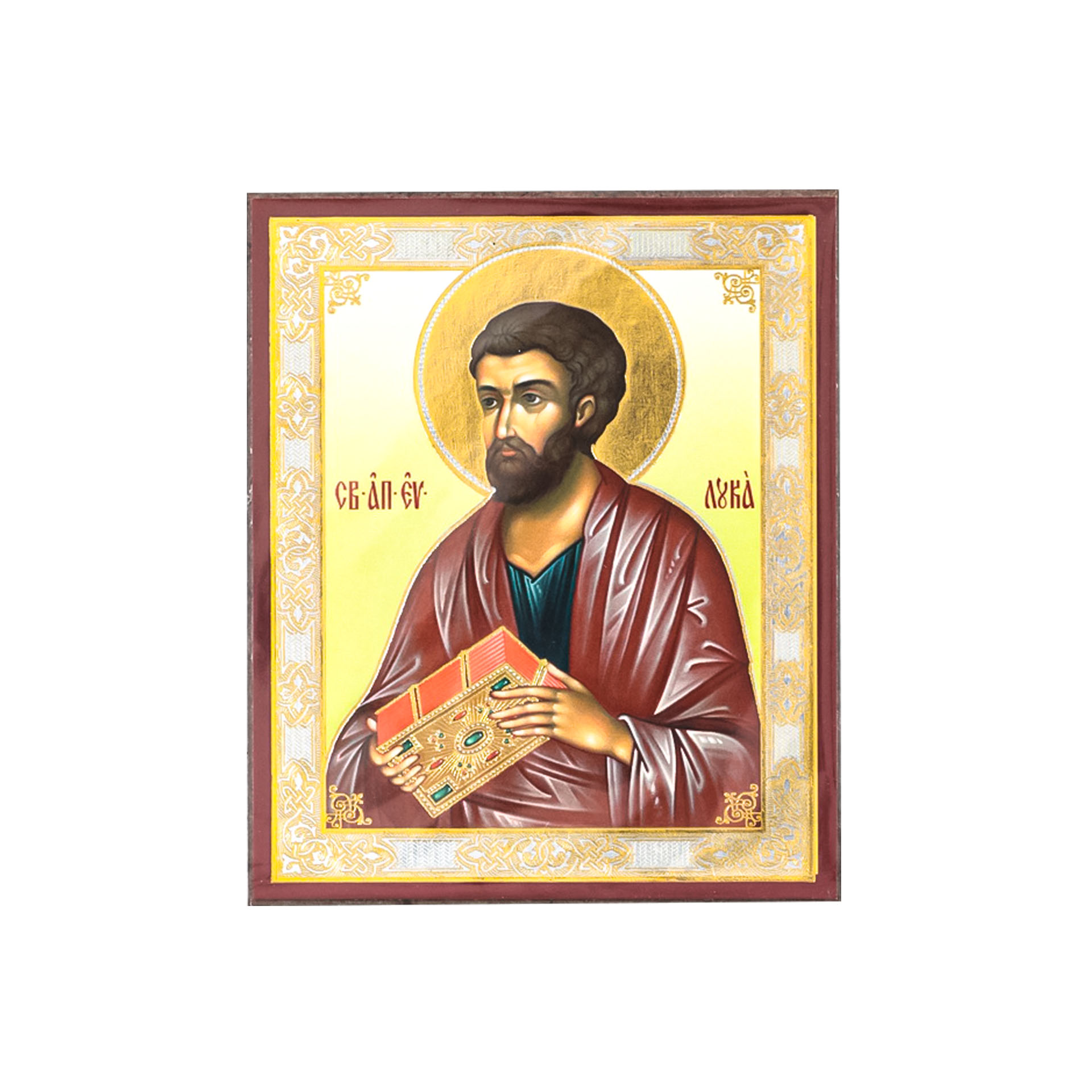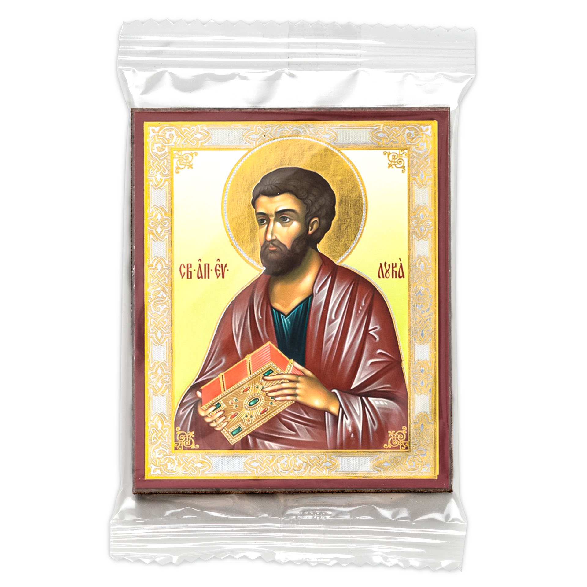 Икона на деревянном планшете 6х9 двойное тиснение, аннотация, упаковка Лука апостол 3