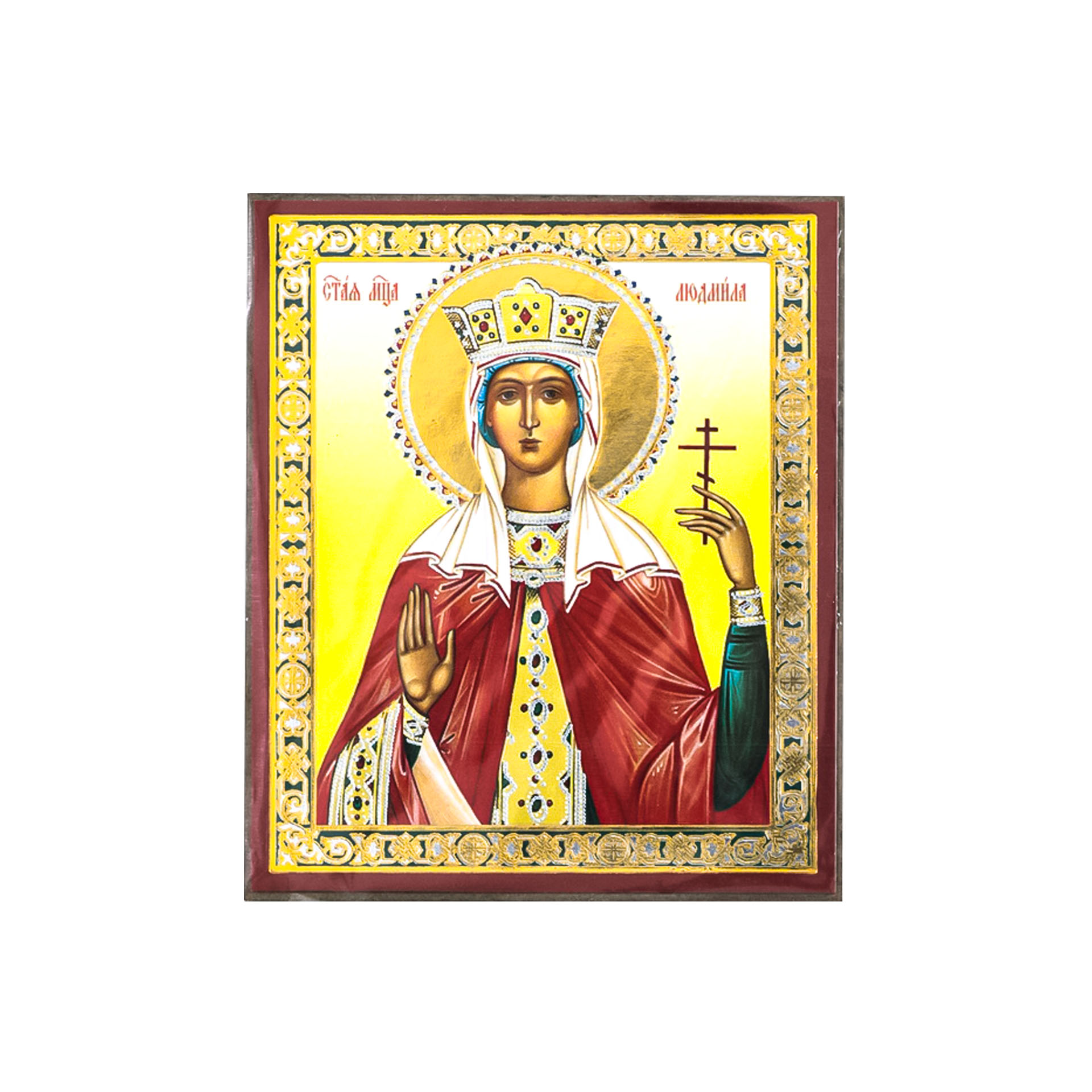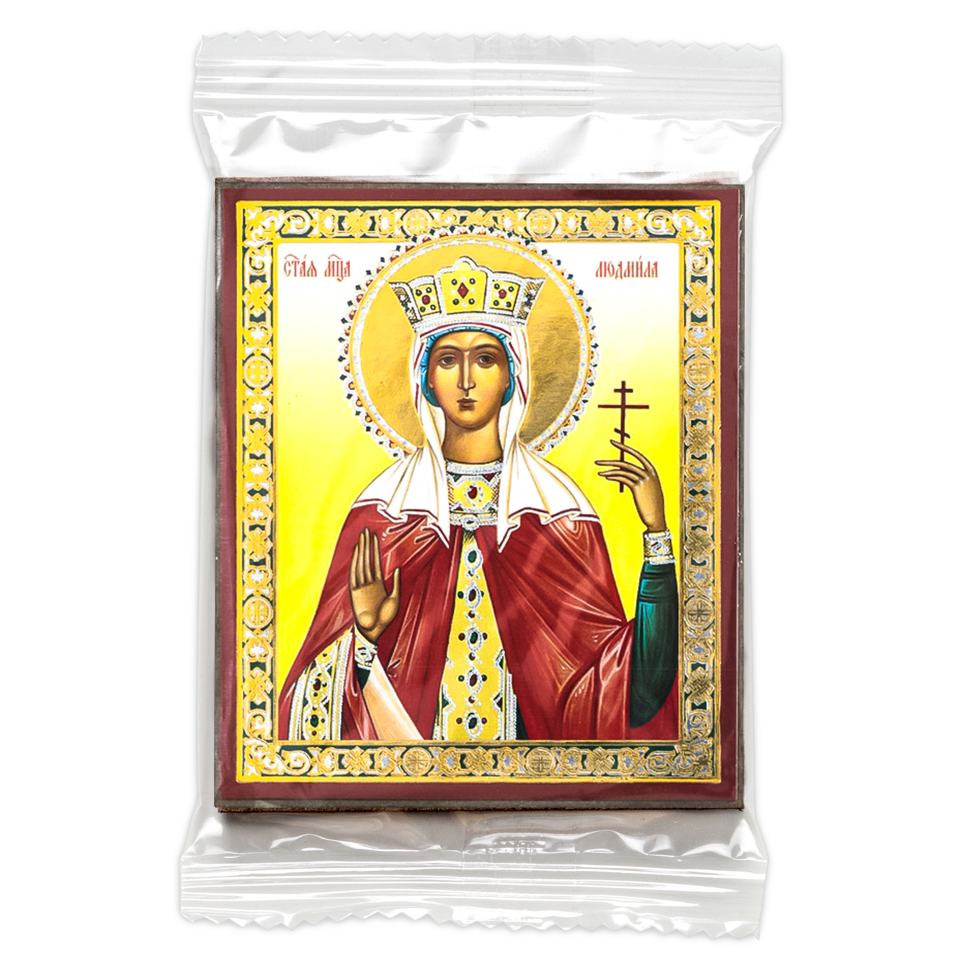 Икона на деревянном планшете 6х9 двойное тиснение, аннотация, упаковка Людмила Чешская, княгиня, мц. (3)
