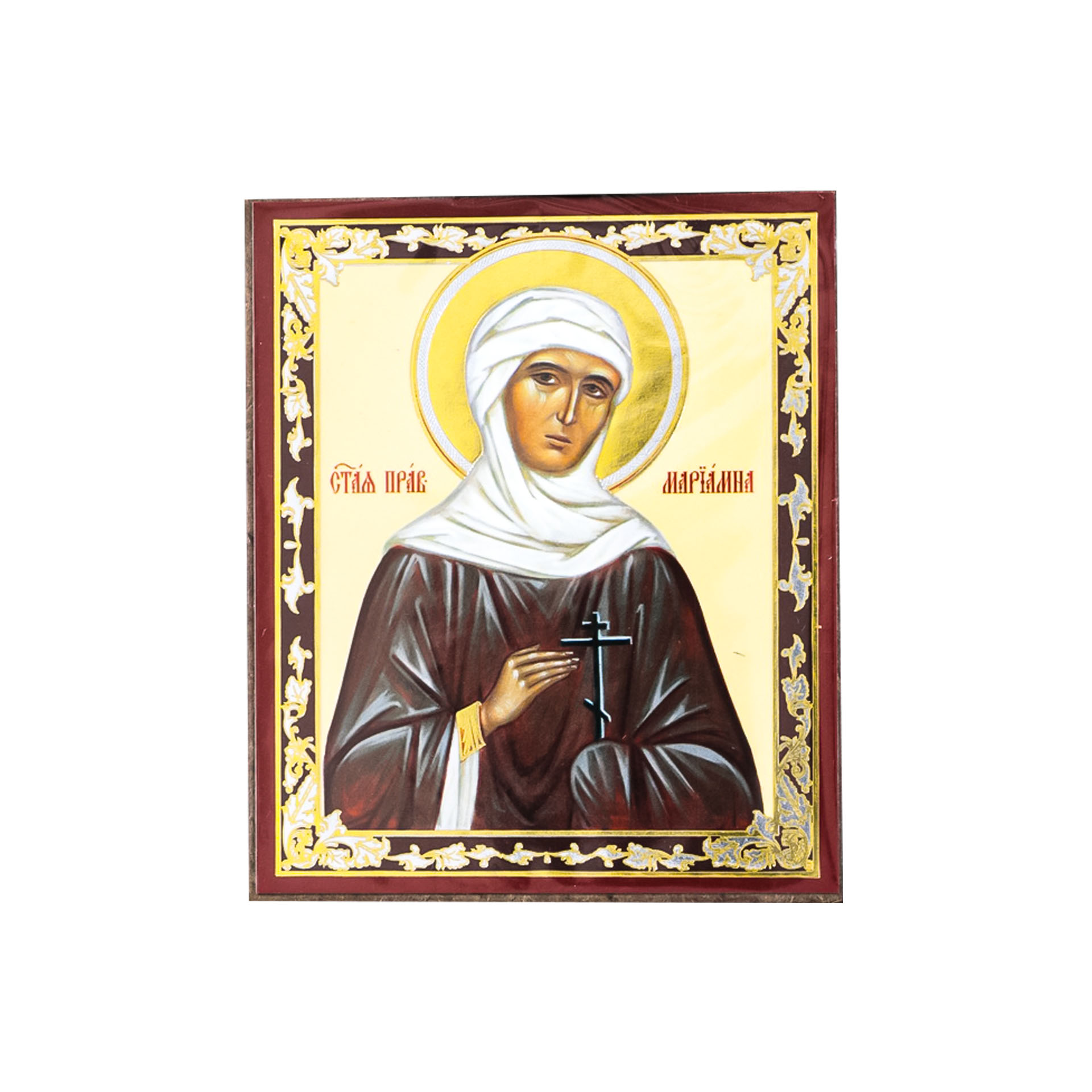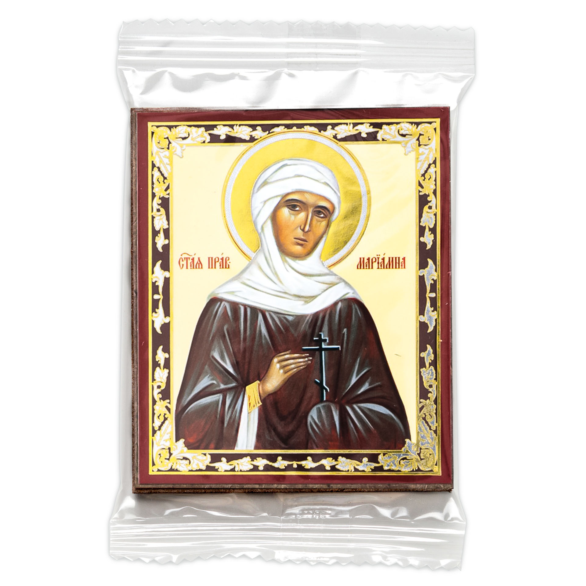 Икона на деревянном планшете 6х9 двойное тиснение, аннотация, упаковка Мариамна, прав. (2)