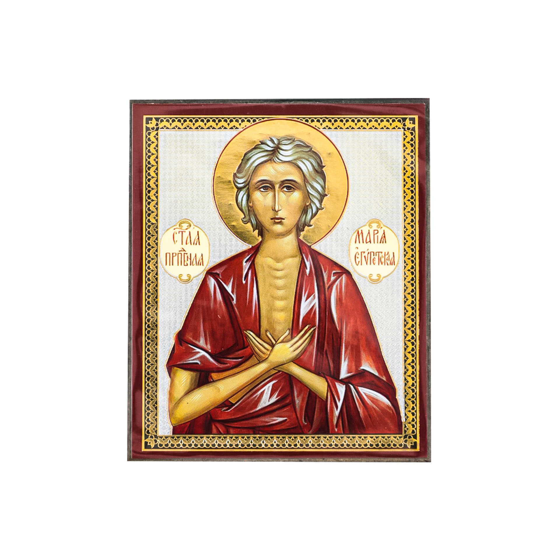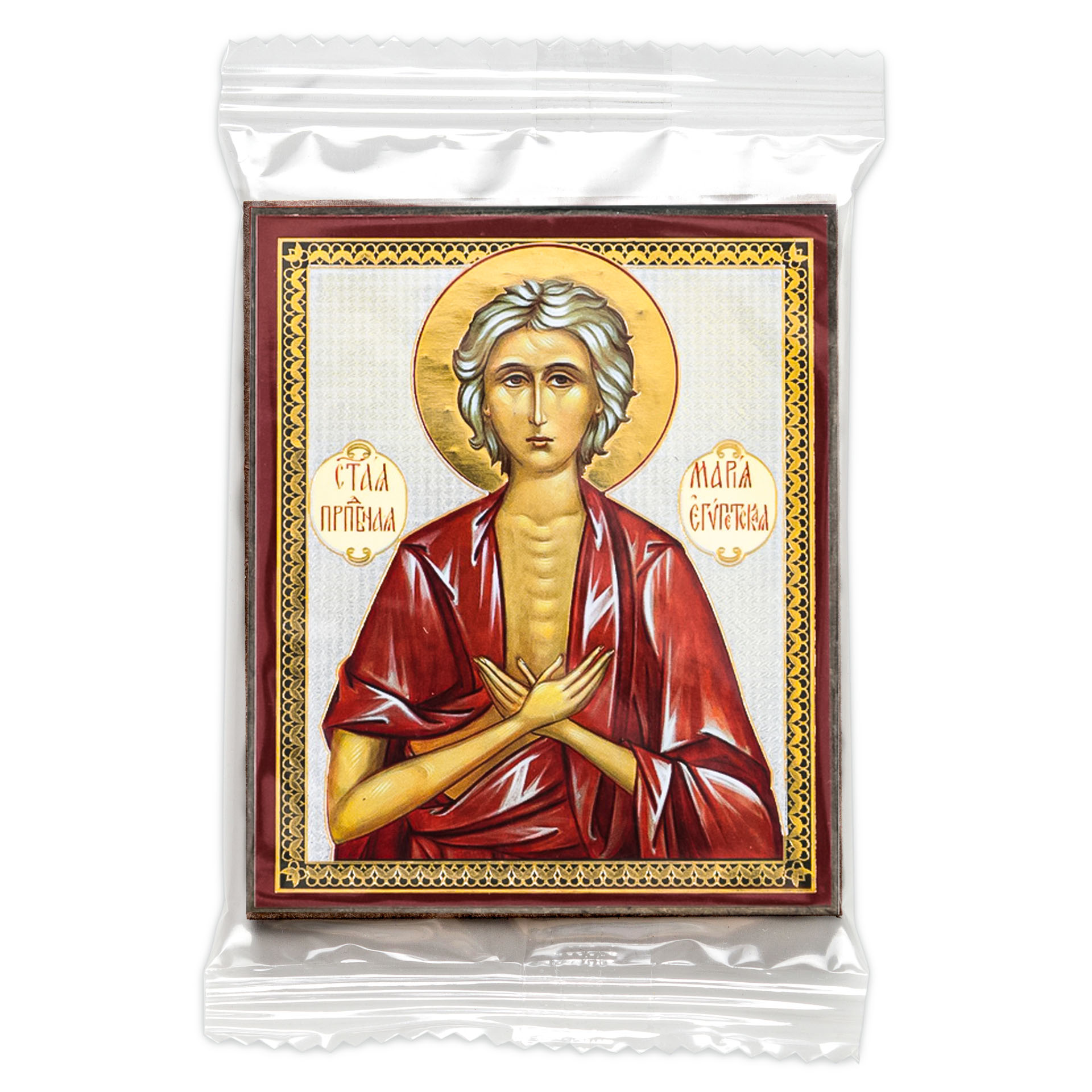 Икона на деревянном планшете 6х9 двойное тиснение, аннотация, упаковка Мария Египетская прп. (2)