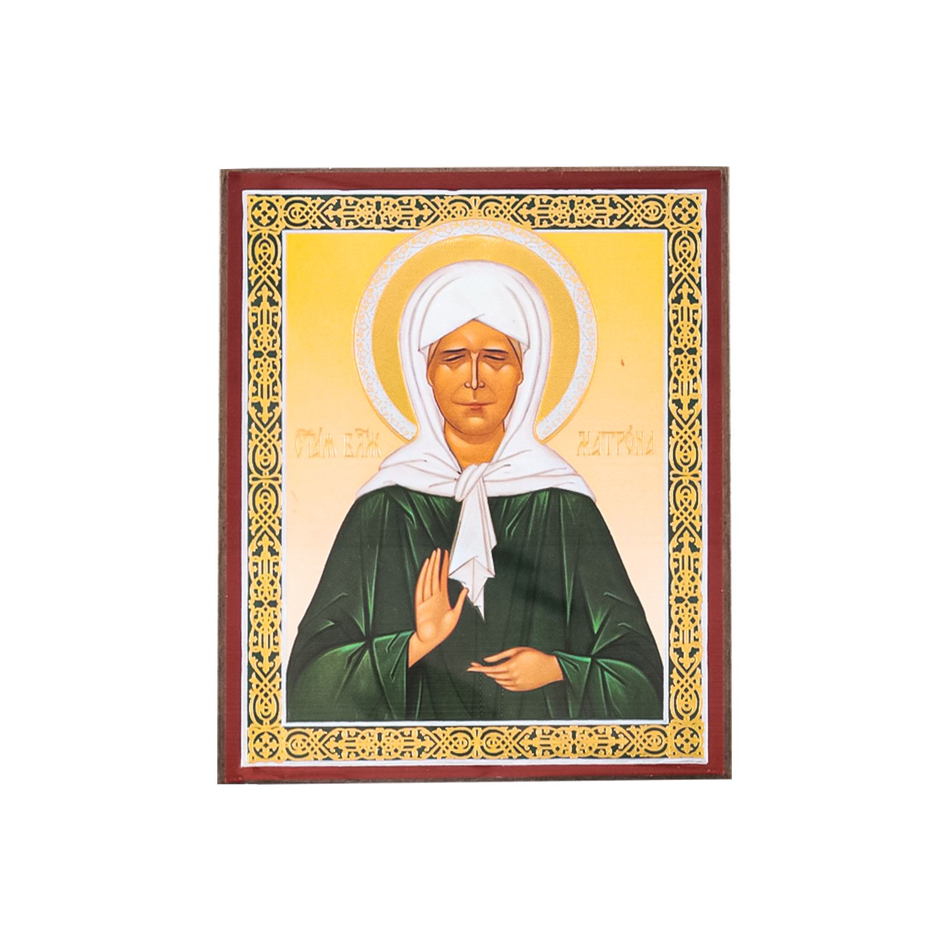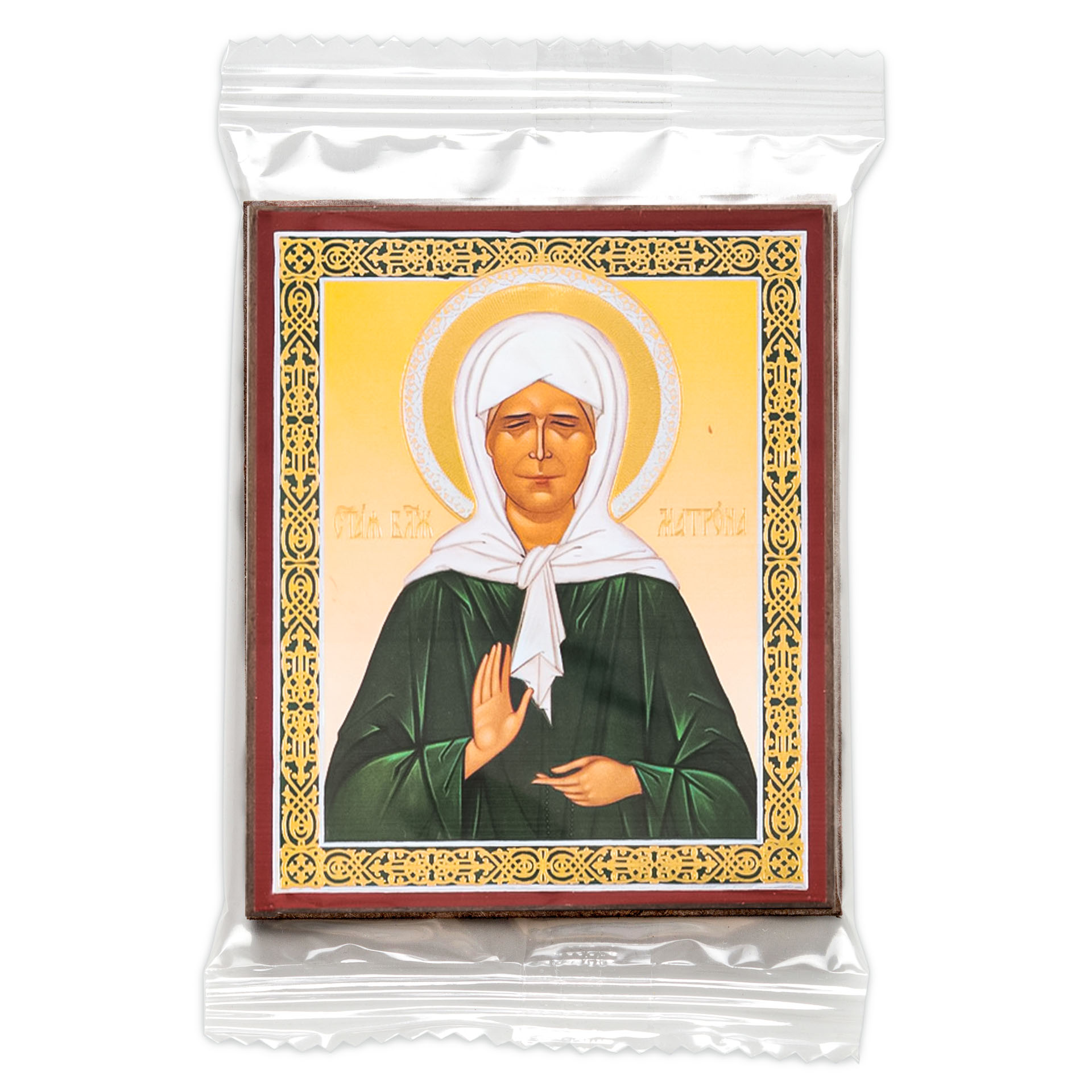 Икона на деревянном планшете 6х9 двойное тиснение, аннотация, упаковка Матрона Московская (2)