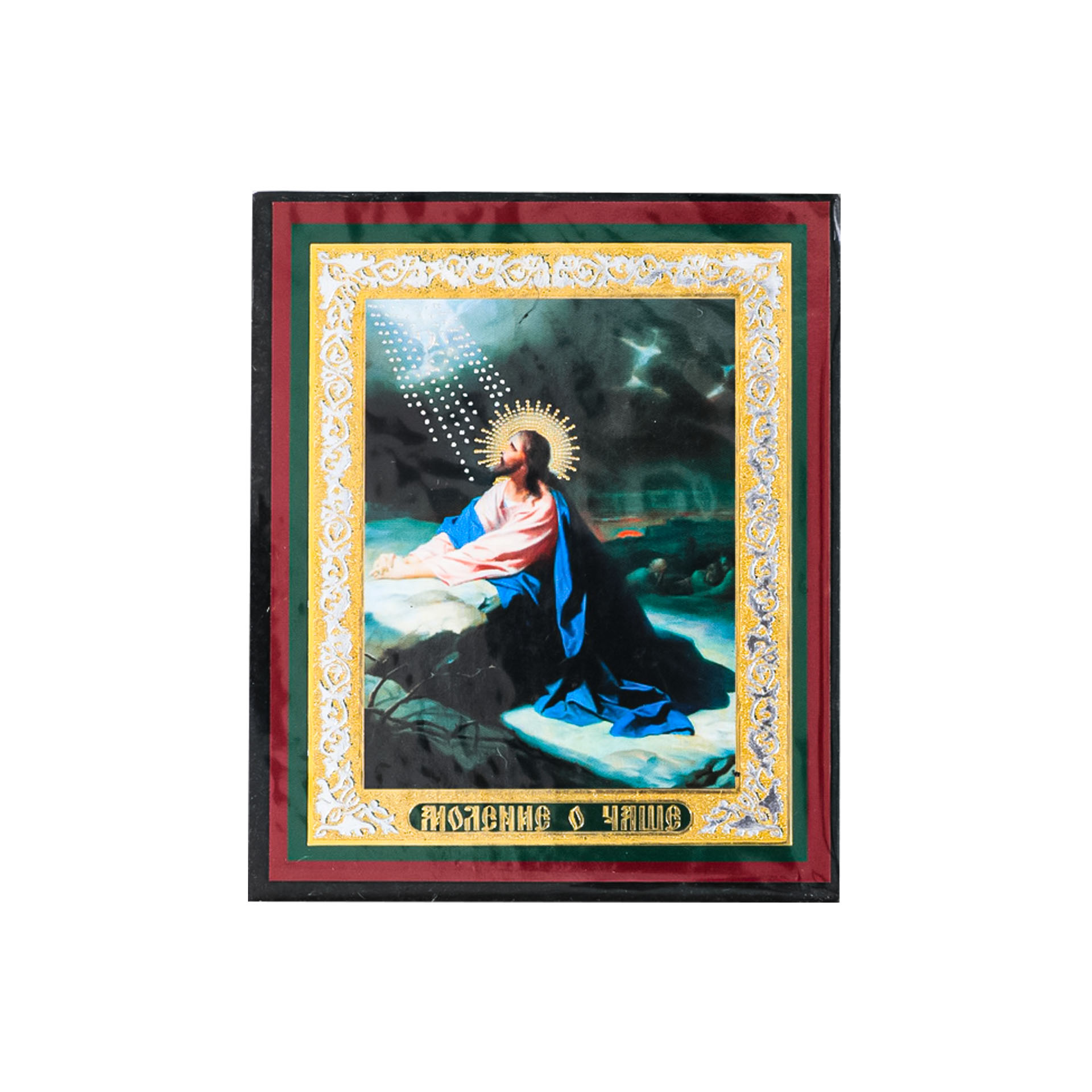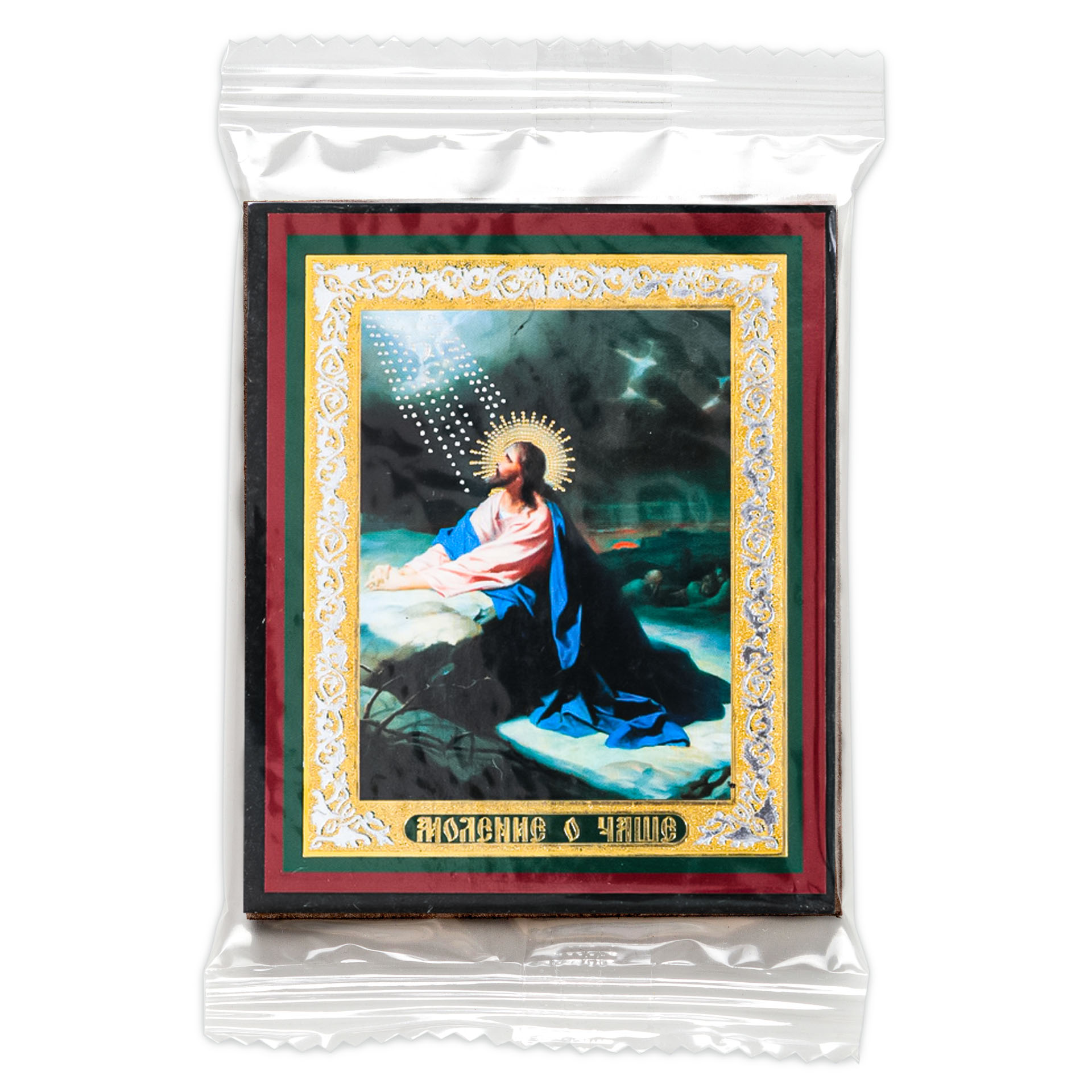 Икона на деревянном планшете 6х9 двойное тиснение, аннотация, упаковка Моление о Чаше