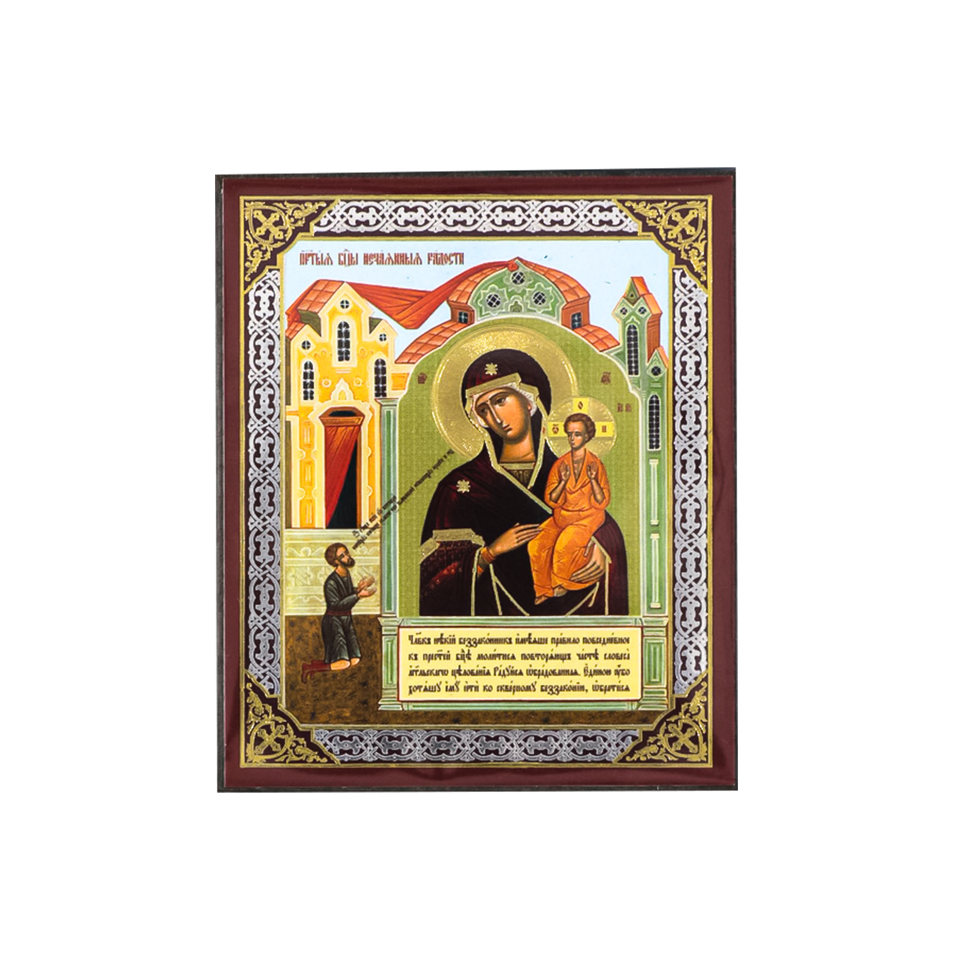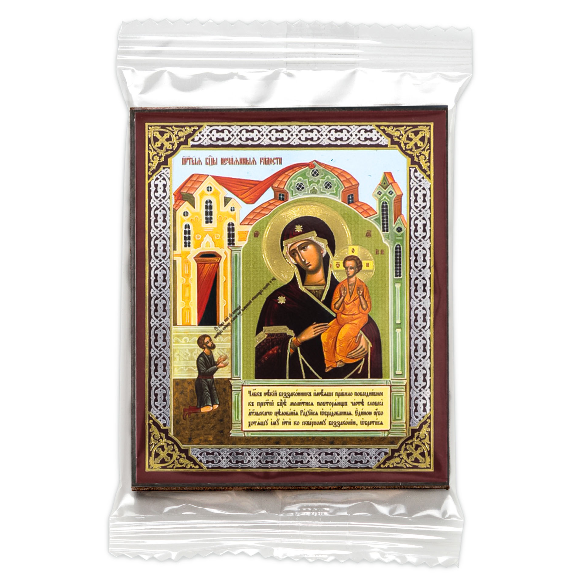 Икона на деревянном планшете 6х9 двойное тиснение, аннотация, упаковка Нечаянная Радость 2