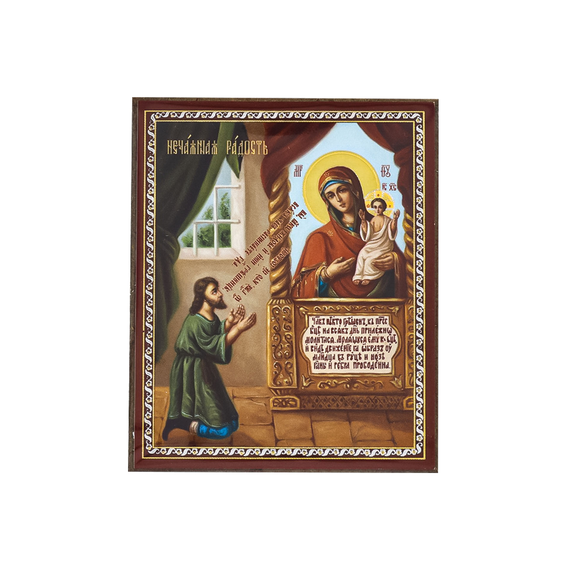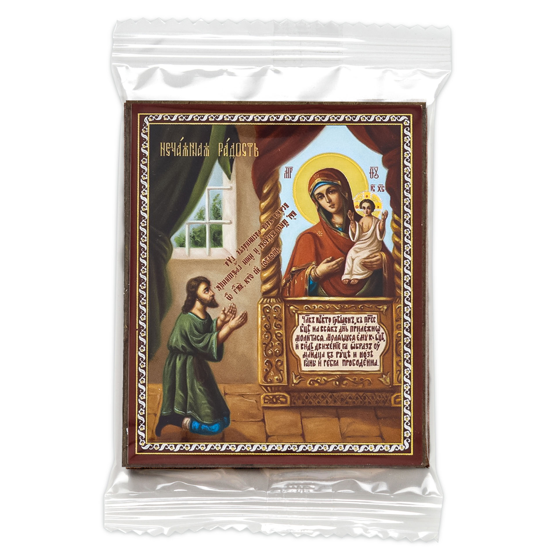 Икона на деревянном планшете 6х9 двойное тиснение, аннотация, упаковка Нечаянная Радость 3