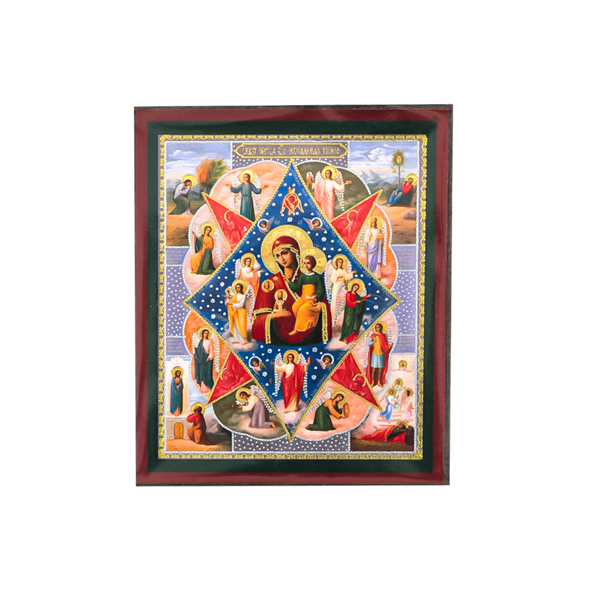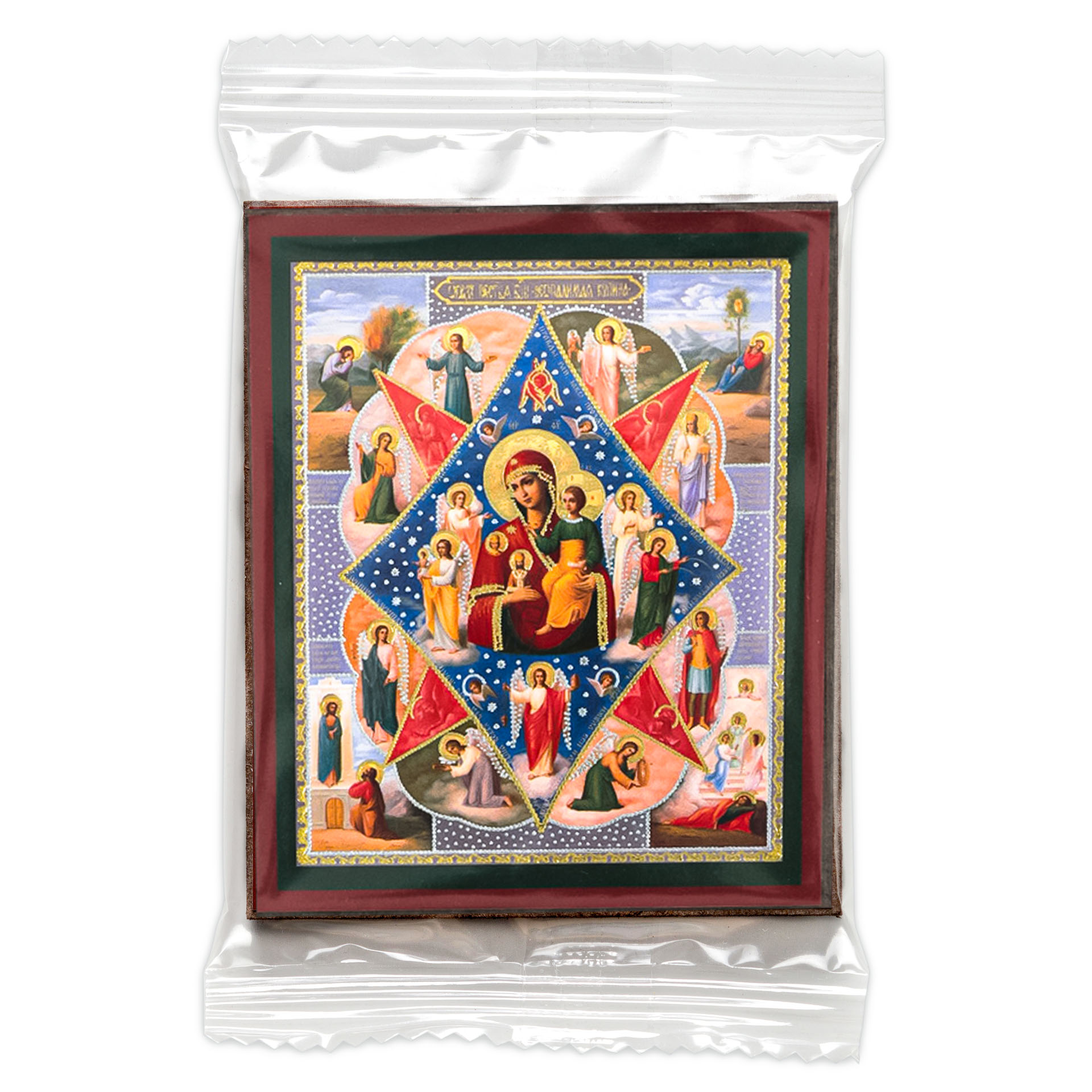 Икона на деревянном планшете 6х9 двойное тиснение, аннотация, упаковка Неопалимая Купина