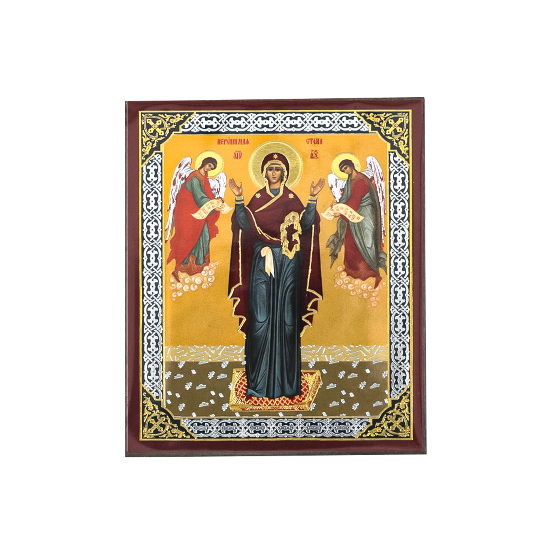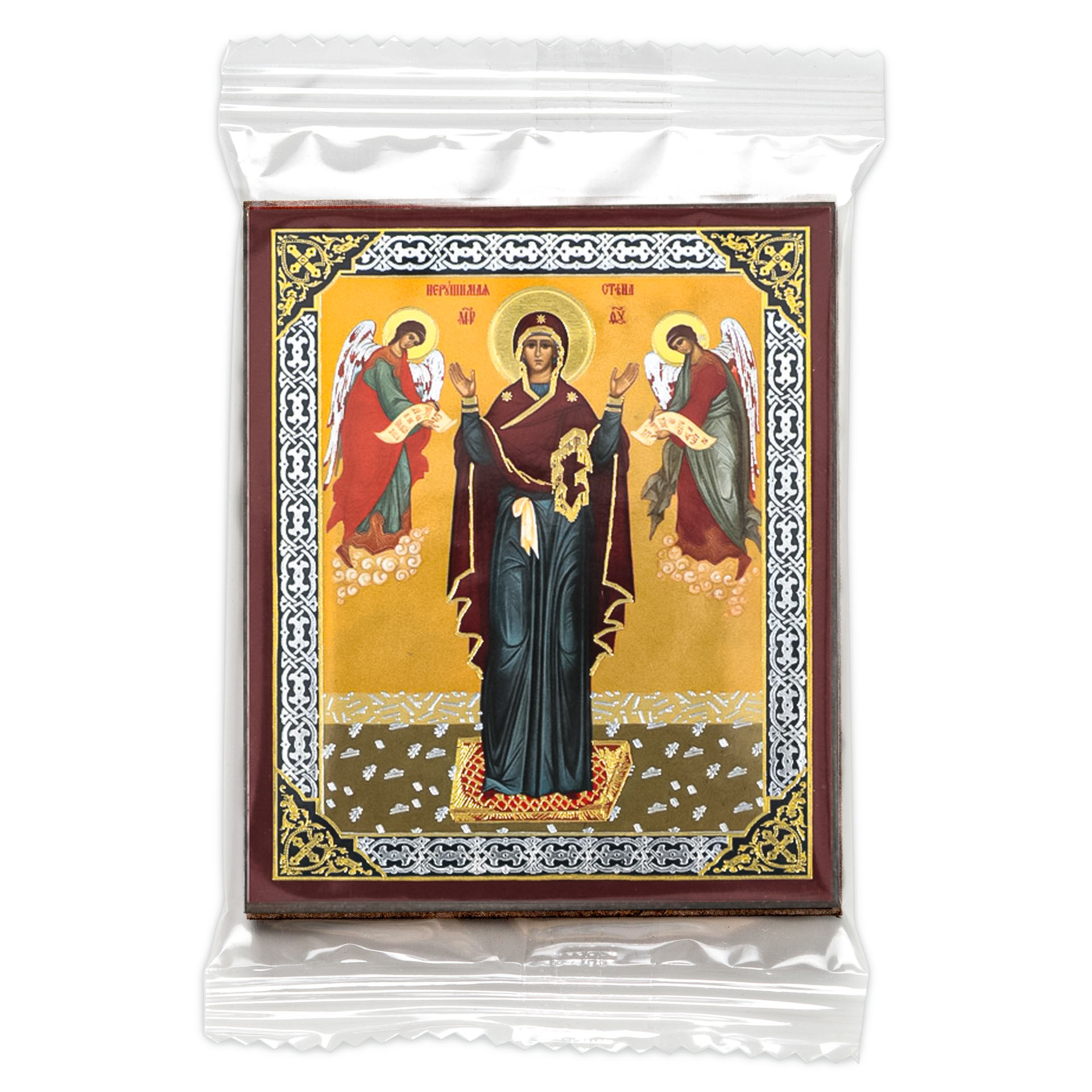 Икона на деревянном планшете 6х9 двойное тиснение, аннотация, упаковка Нерушимая Стена (с предстоящими)