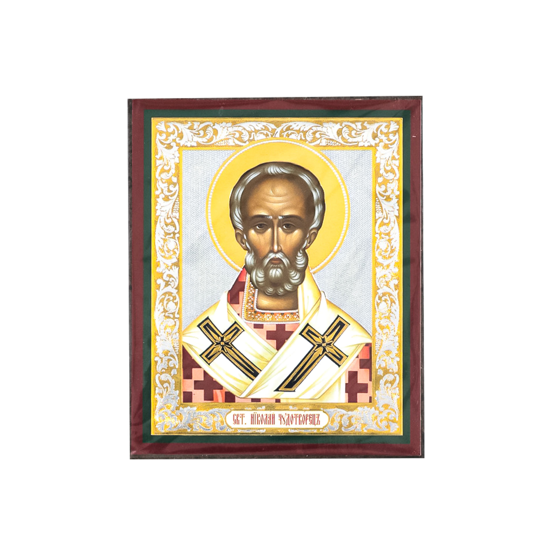 Икона на деревянном планшете 6х9 двойное тиснение, аннотация, упаковка Николай Чудотворец 2