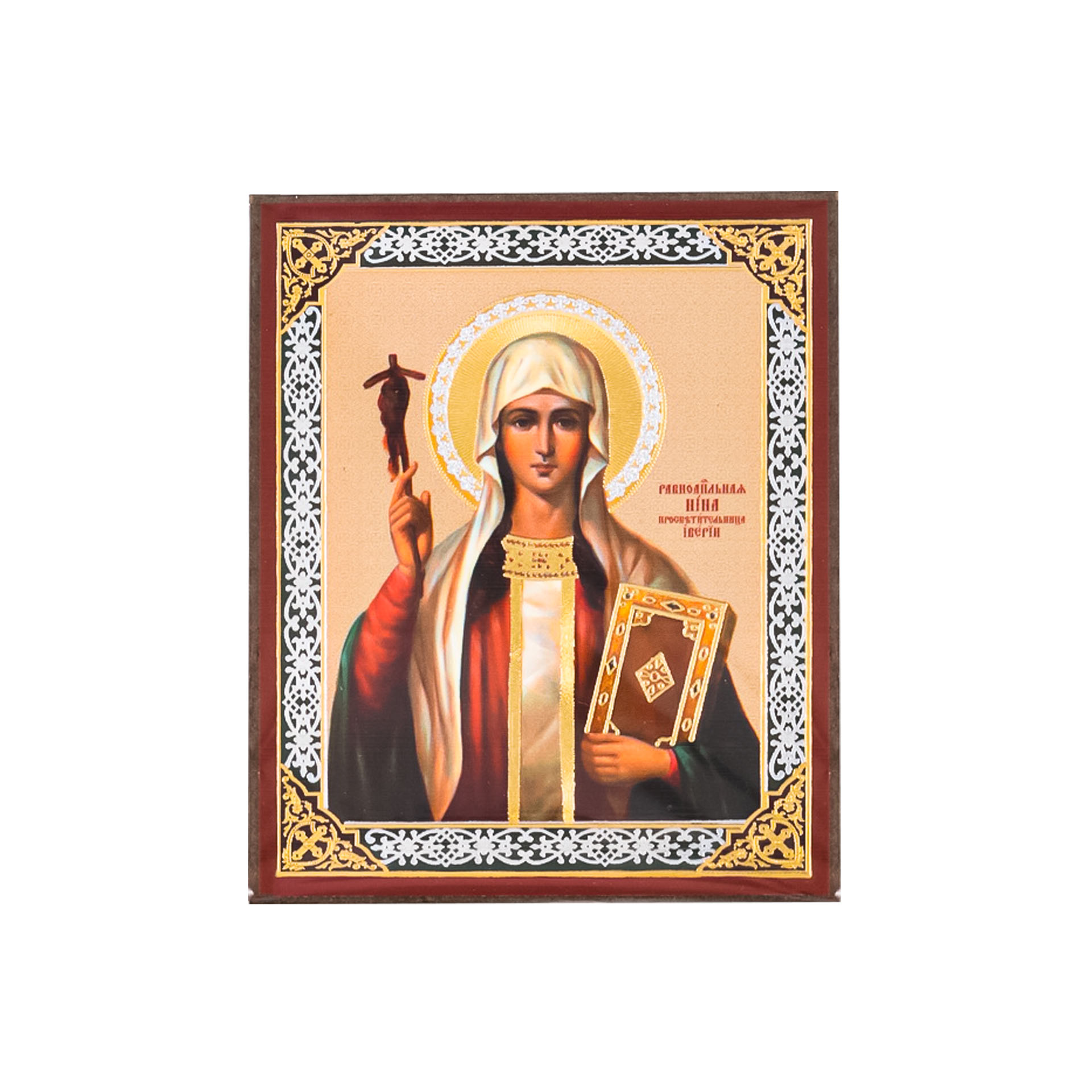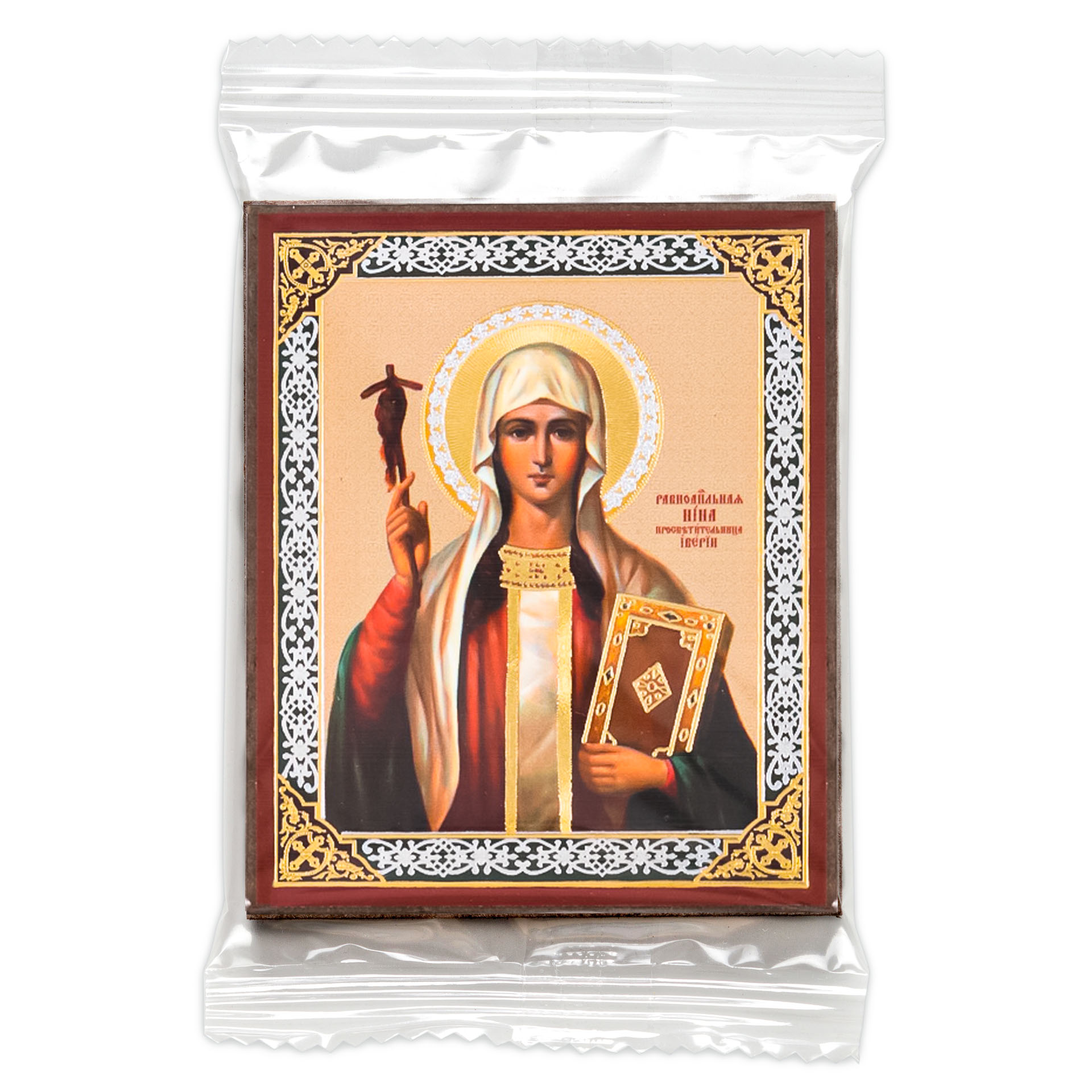 Икона на деревянном планшете 6х9 двойное тиснение, аннотация, упаковка Нина 2