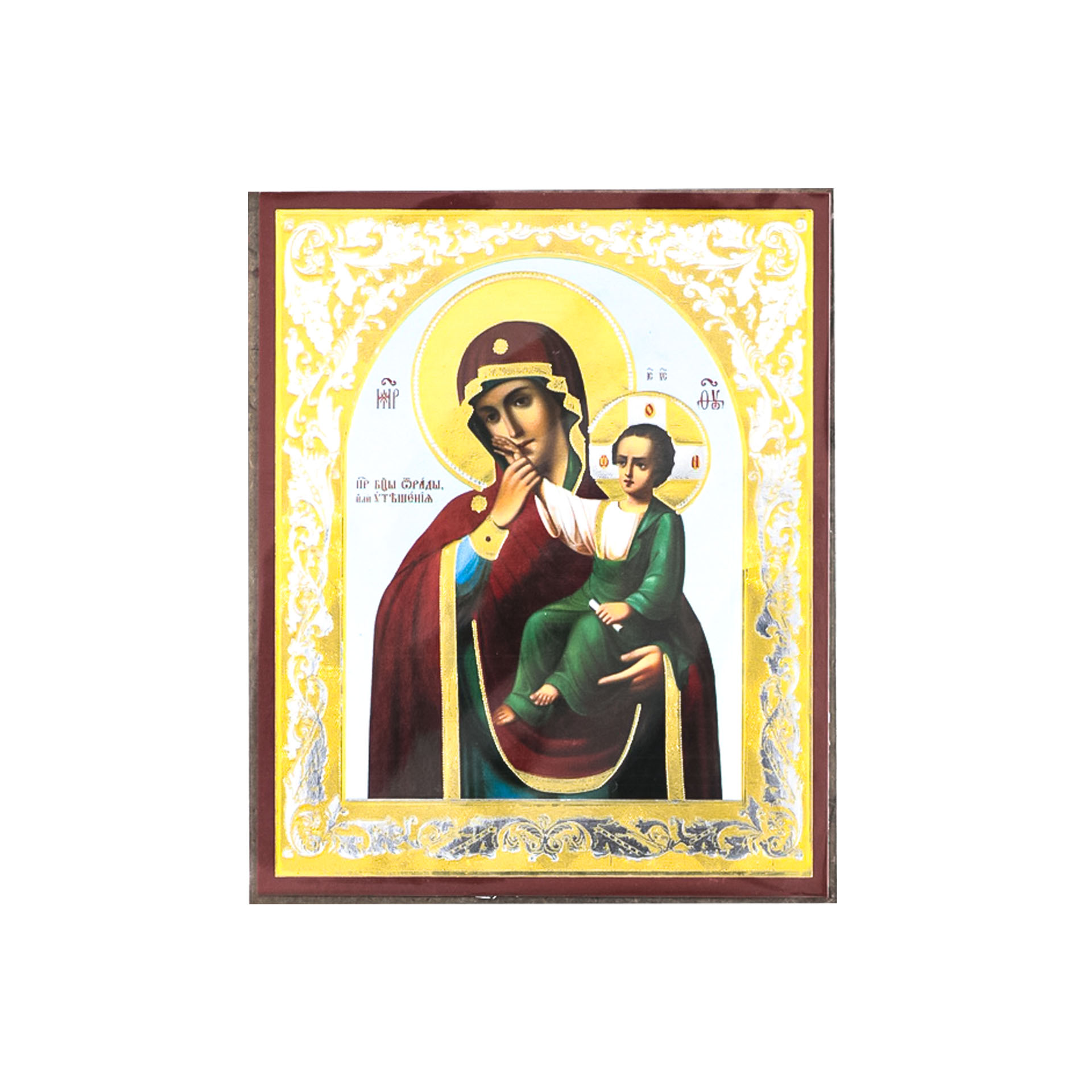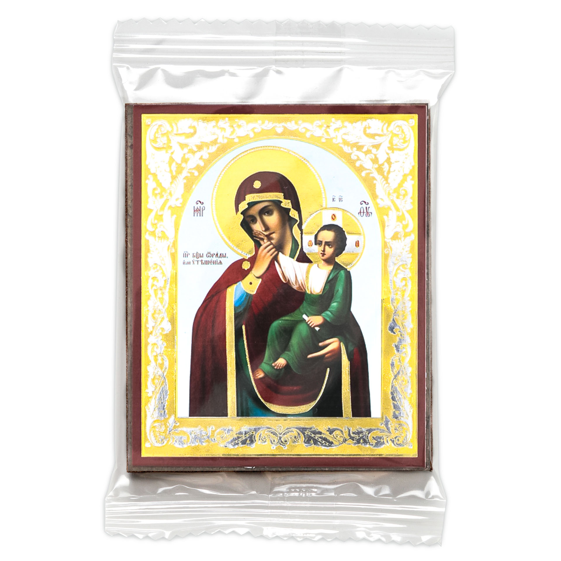 Икона на деревянном планшете 6х9 двойное тиснение, аннотация, упаковка Отрада и Утешение БМ 2