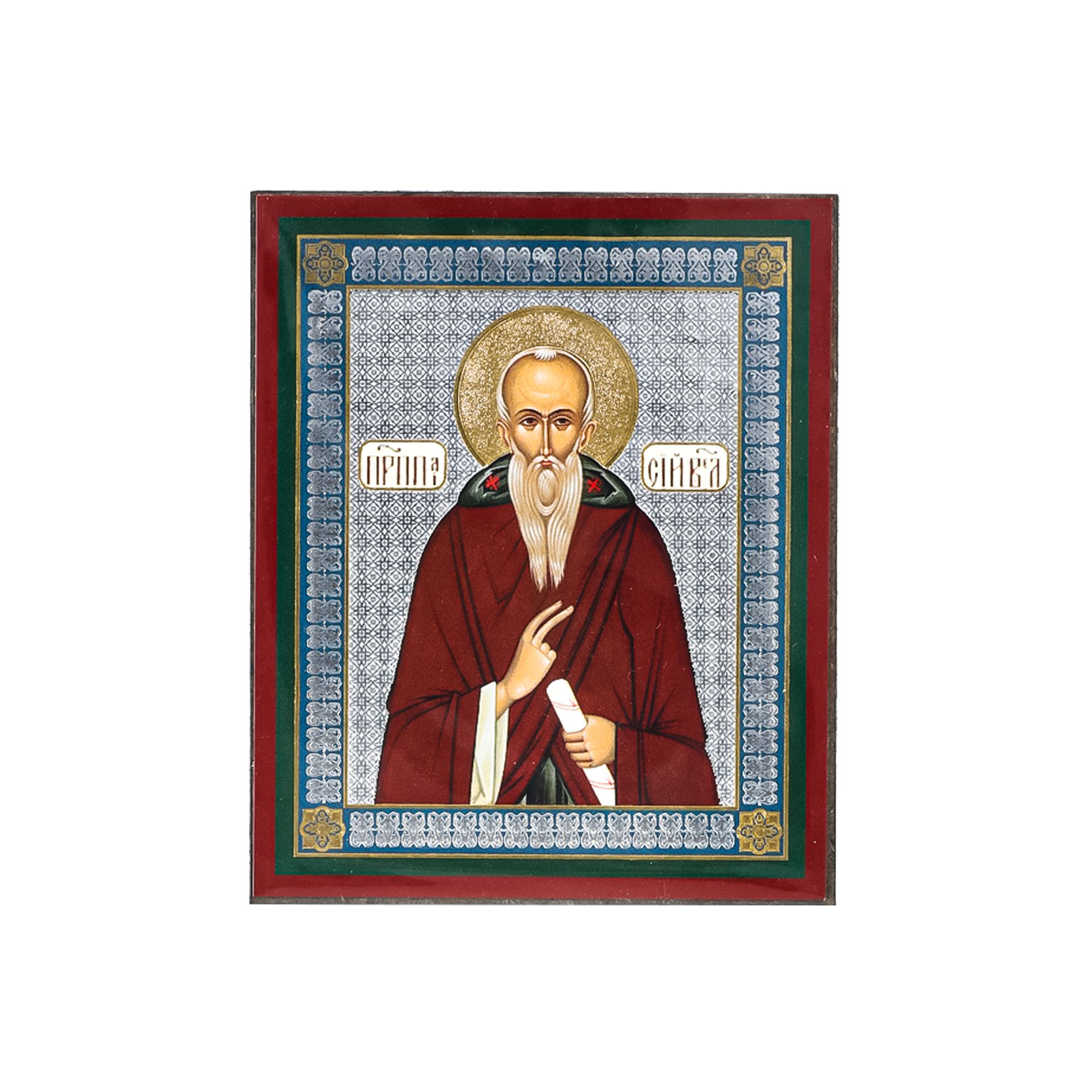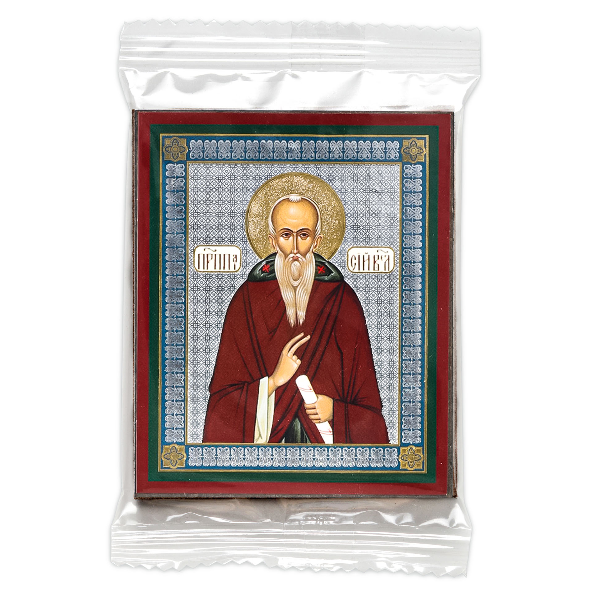 Икона на деревянном планшете 6х9 двойное тиснение, аннотация, упаковка Паисий Великий