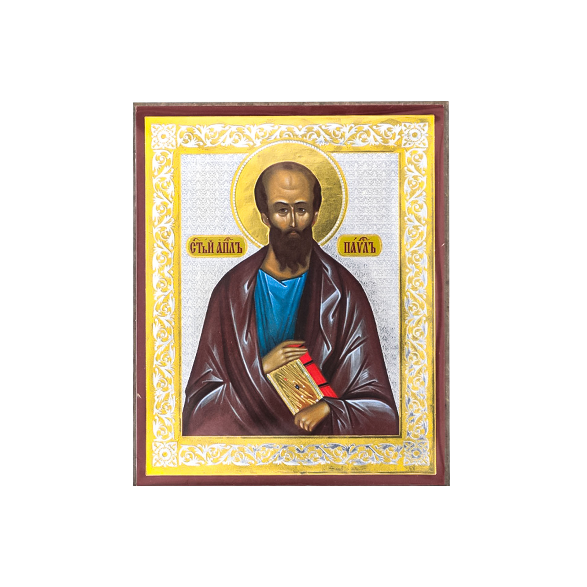 Икона на деревянном планшете 6х9 двойное тиснение, аннотация, упаковка Павел, апостол
