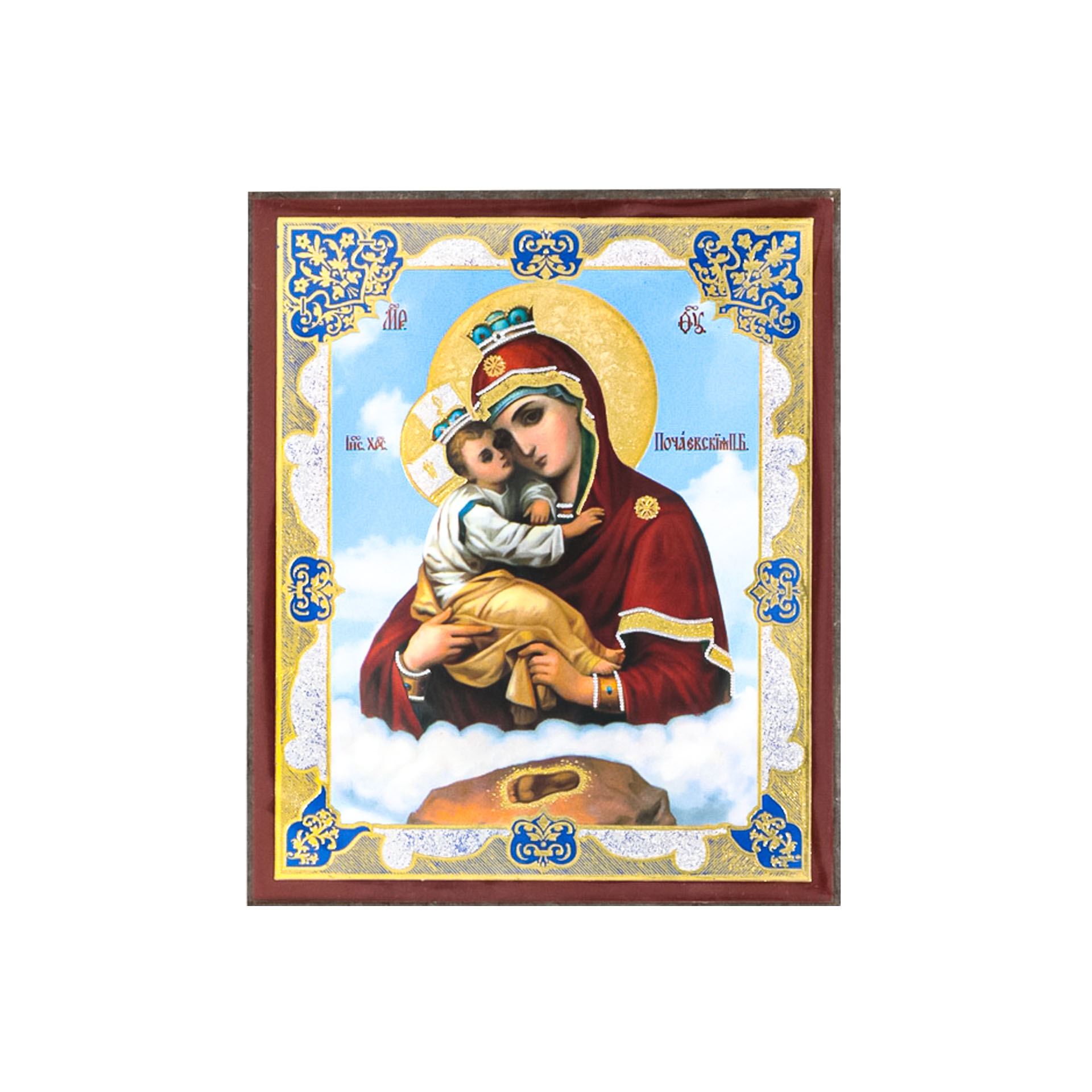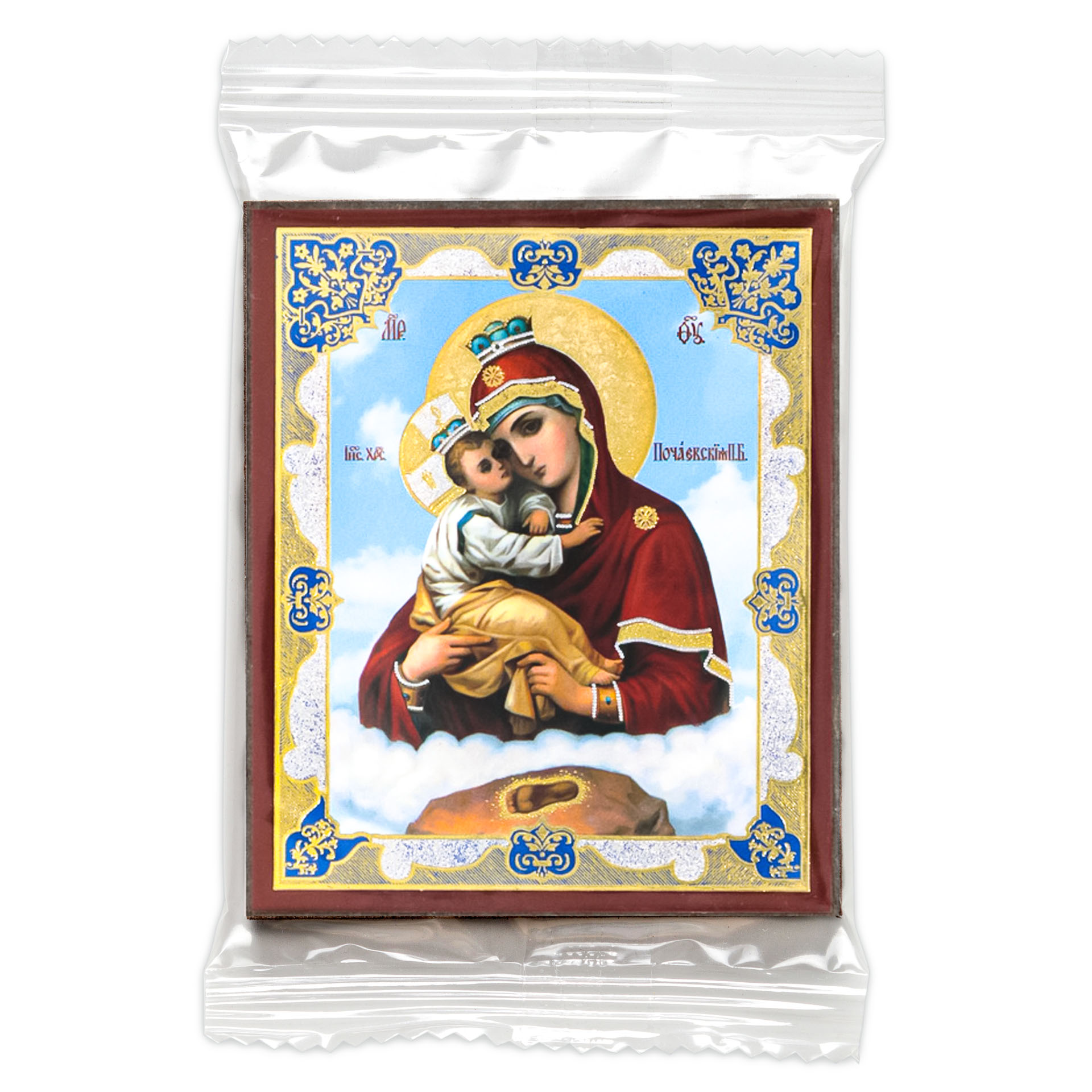 Икона на деревянном планшете 6х9 двойное тиснение, аннотация, упаковка Почаевская БМ 2
