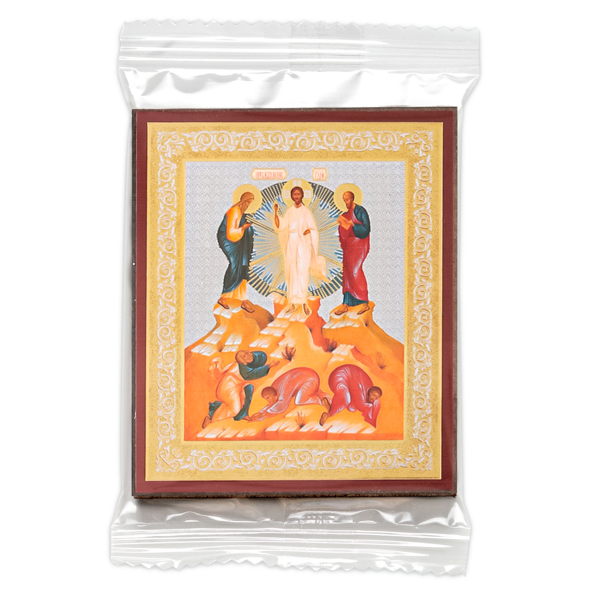 Икона на деревянном планшете 6х9 двойное тиснение, аннотация, упаковка Преображение