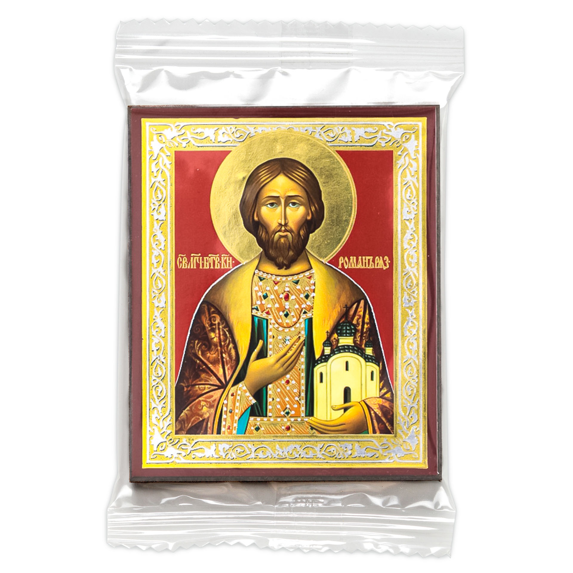 Икона на деревянном планшете 6х9 двойное тиснение, аннотация, упаковка Роман Рязанский 2