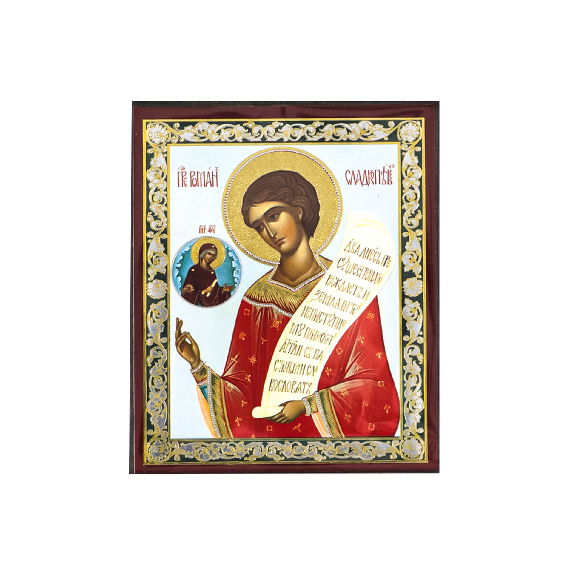 Икона на деревянном планшете 6х9 двойное тиснение, аннотация, упаковка Роман Сладкопевец