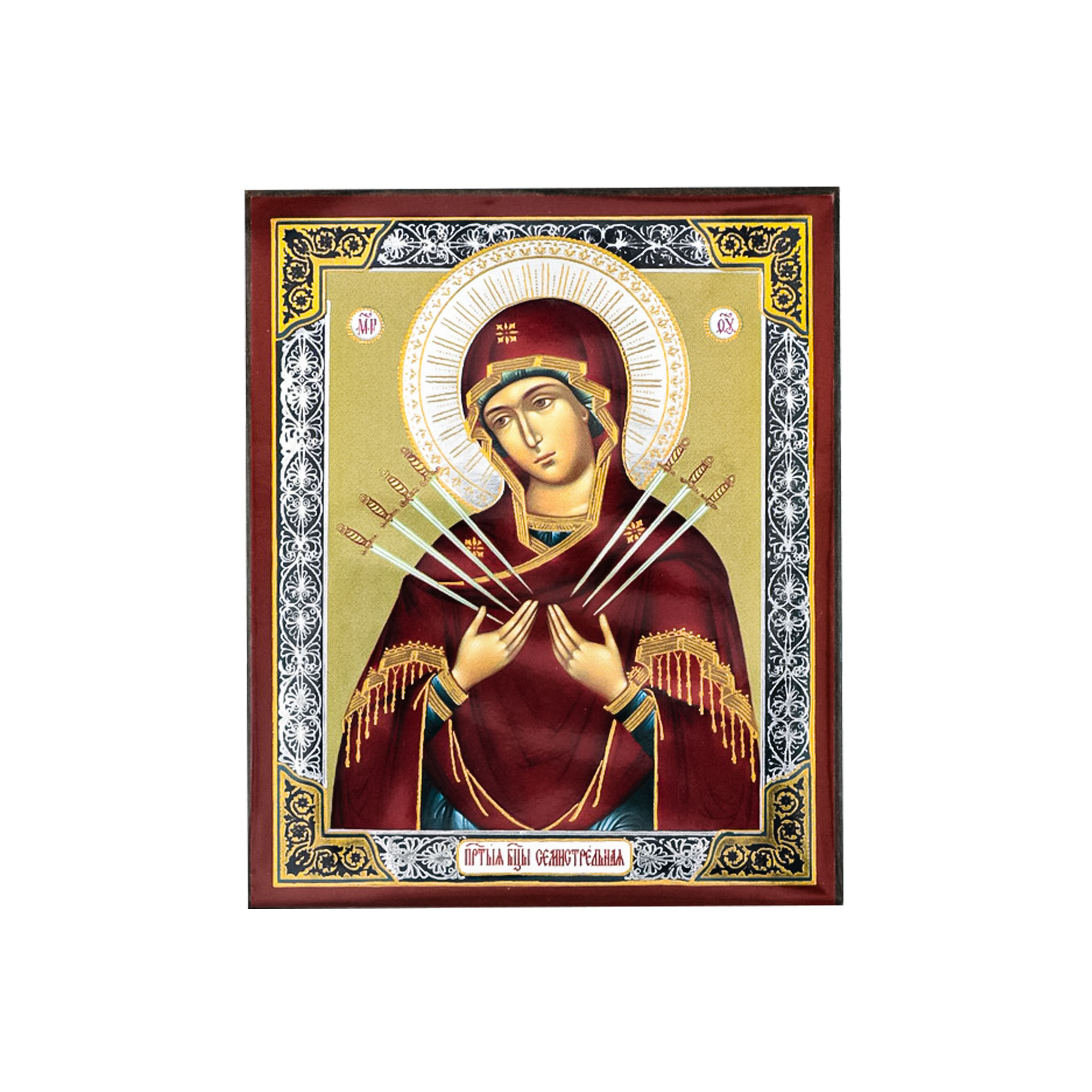 Икона на деревянном планшете 6х9 двойное тиснение, аннотация, упаковка Семистрельная БМ 2