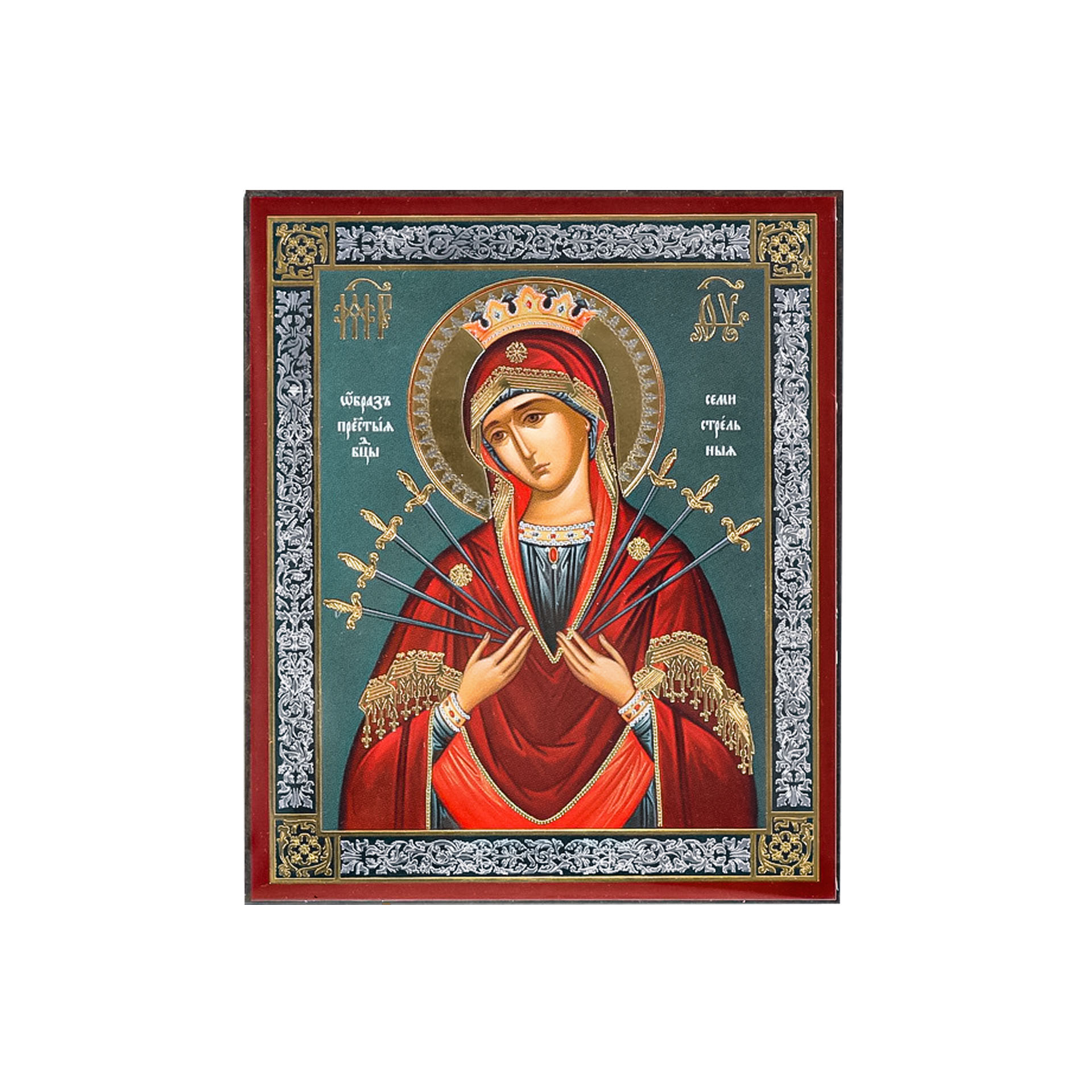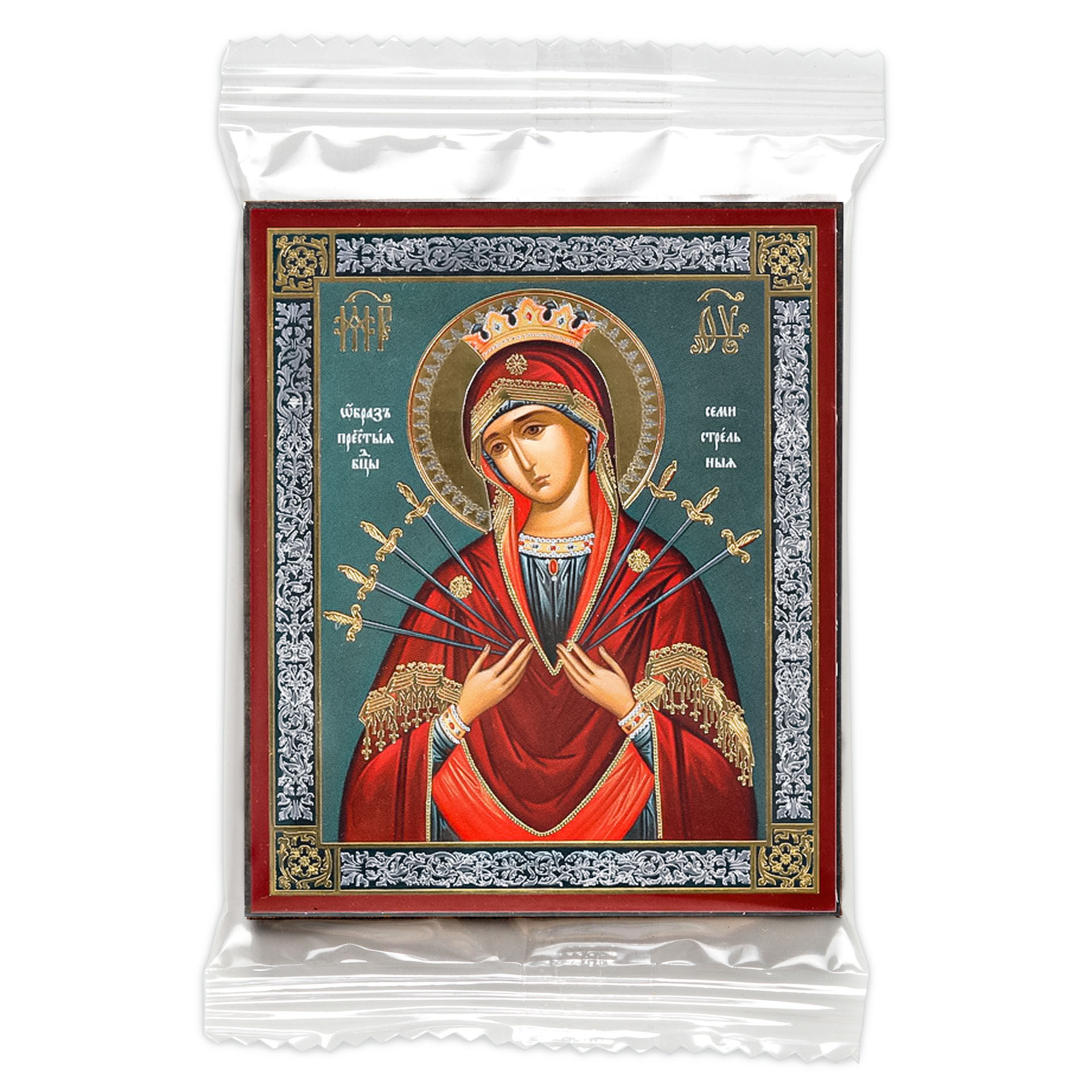 Икона на деревянном планшете 6х9 двойное тиснение, аннотация, упаковка Семистрельная БМ 3