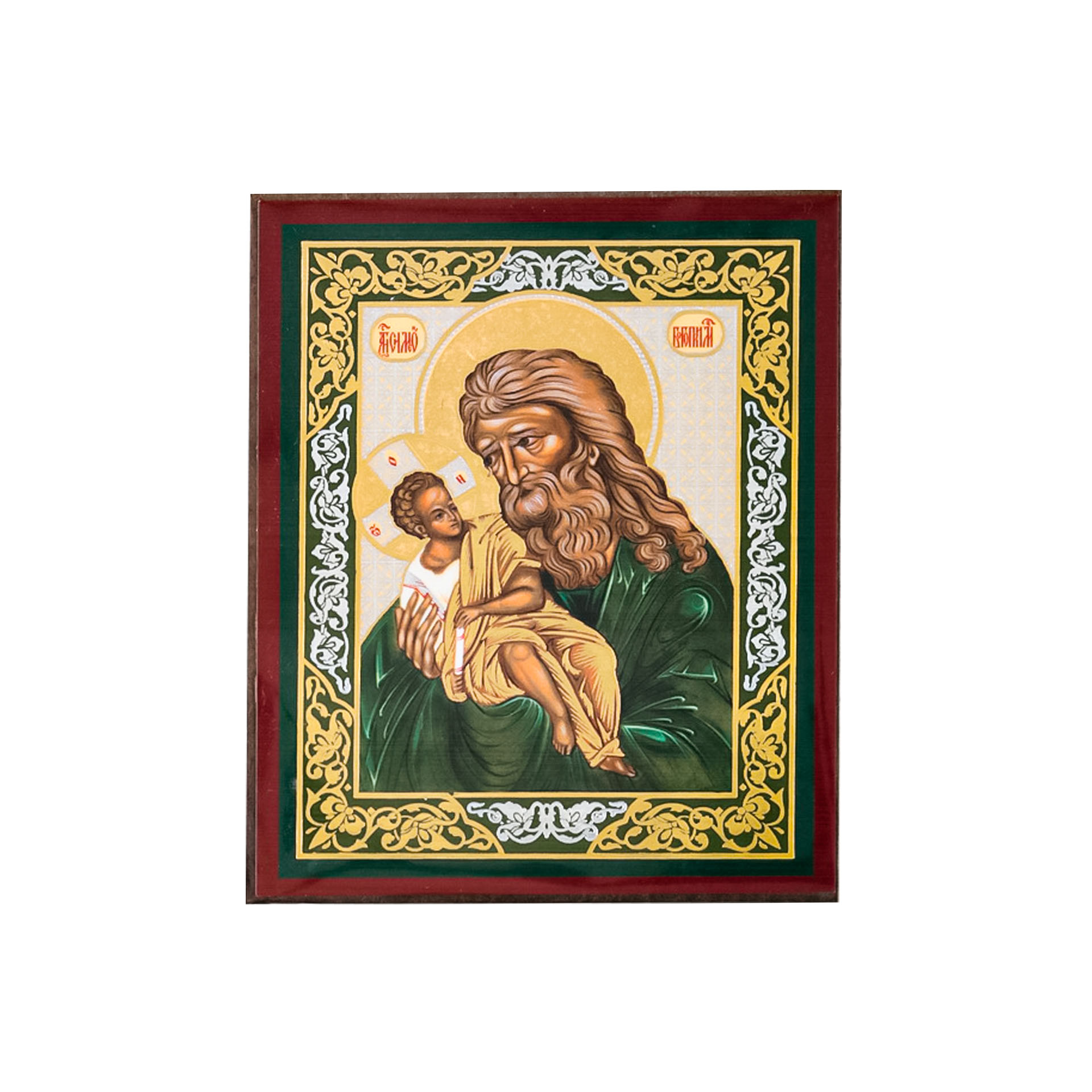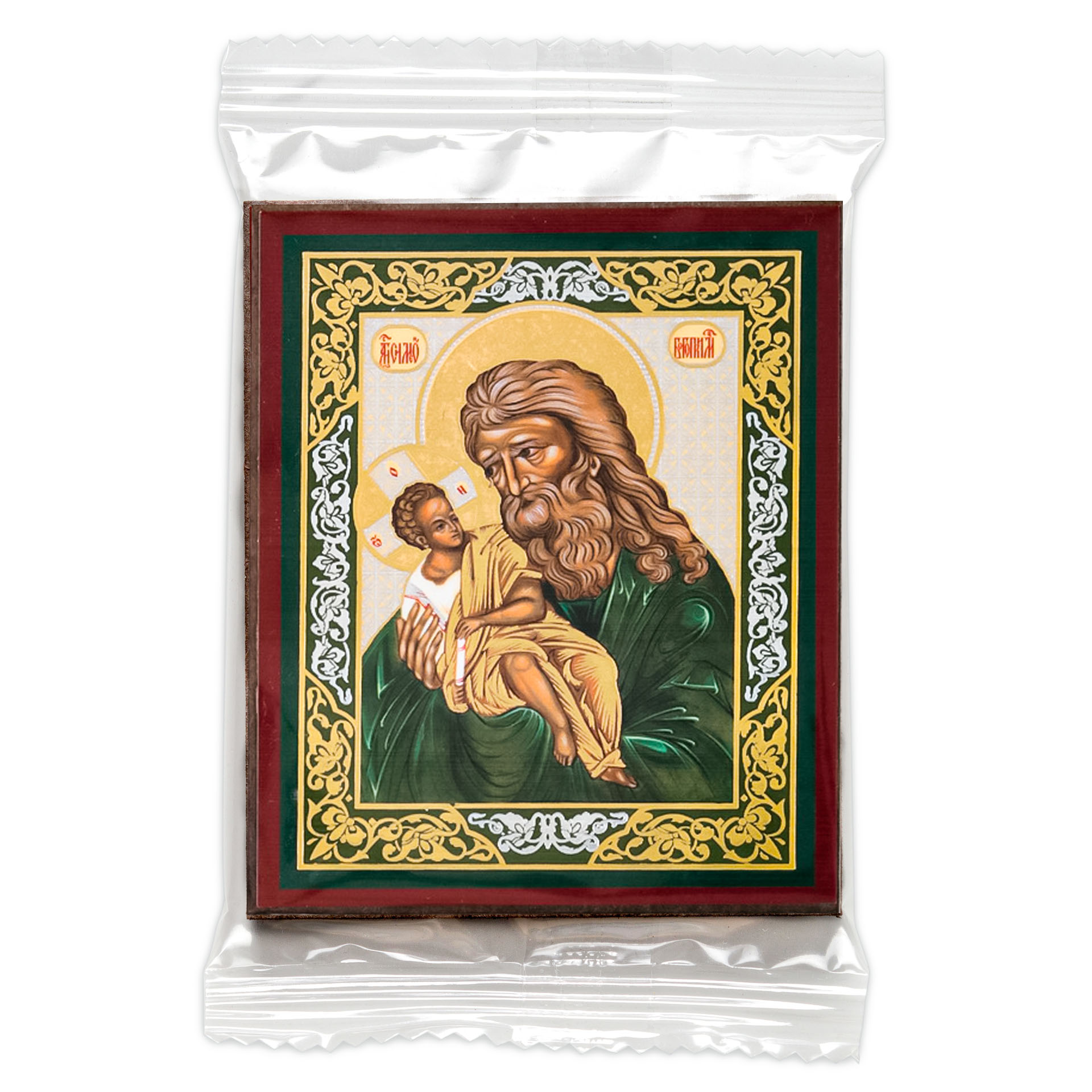 Икона на деревянном планшете 6х9 двойное тиснение, аннотация, упаковка Симеон Богоприимец