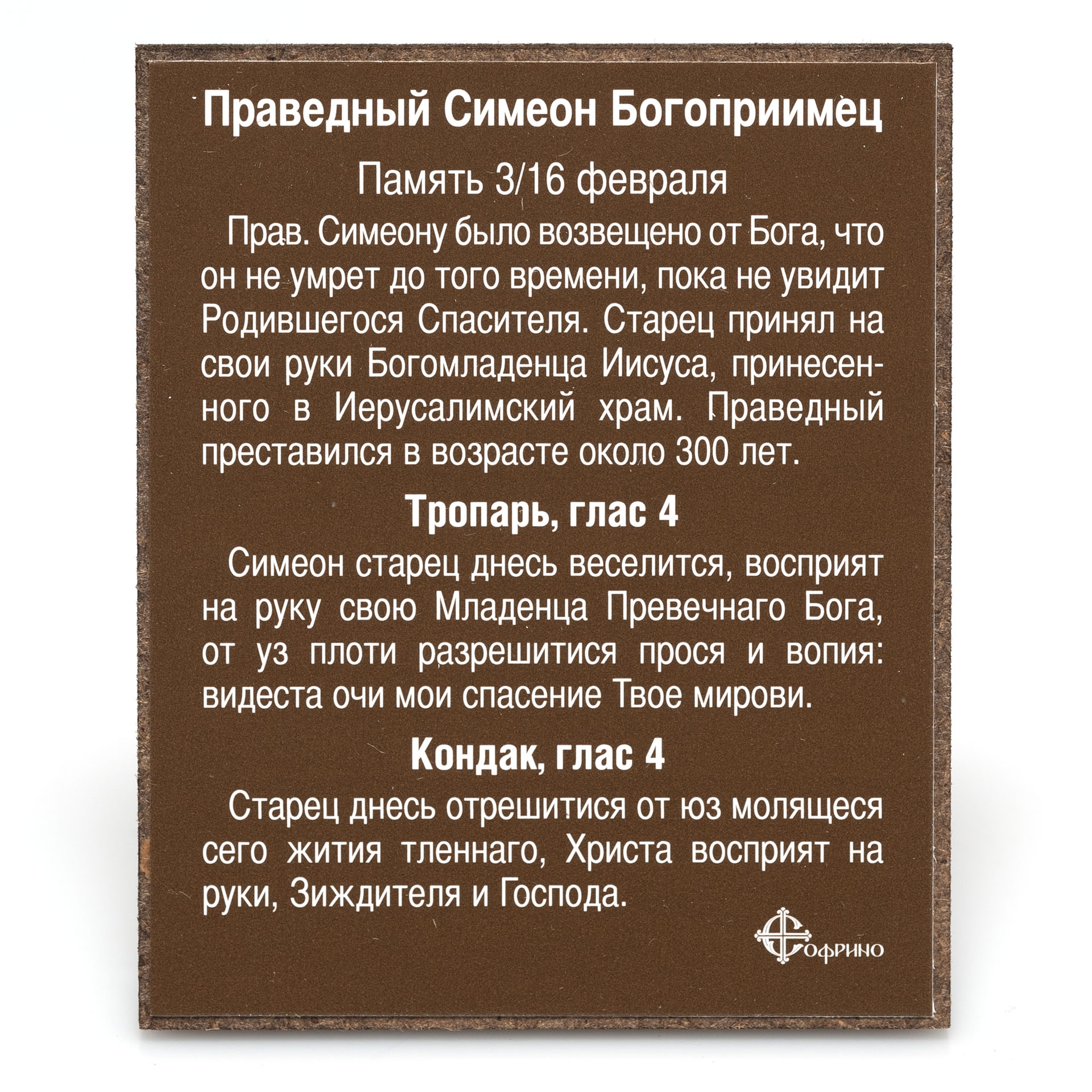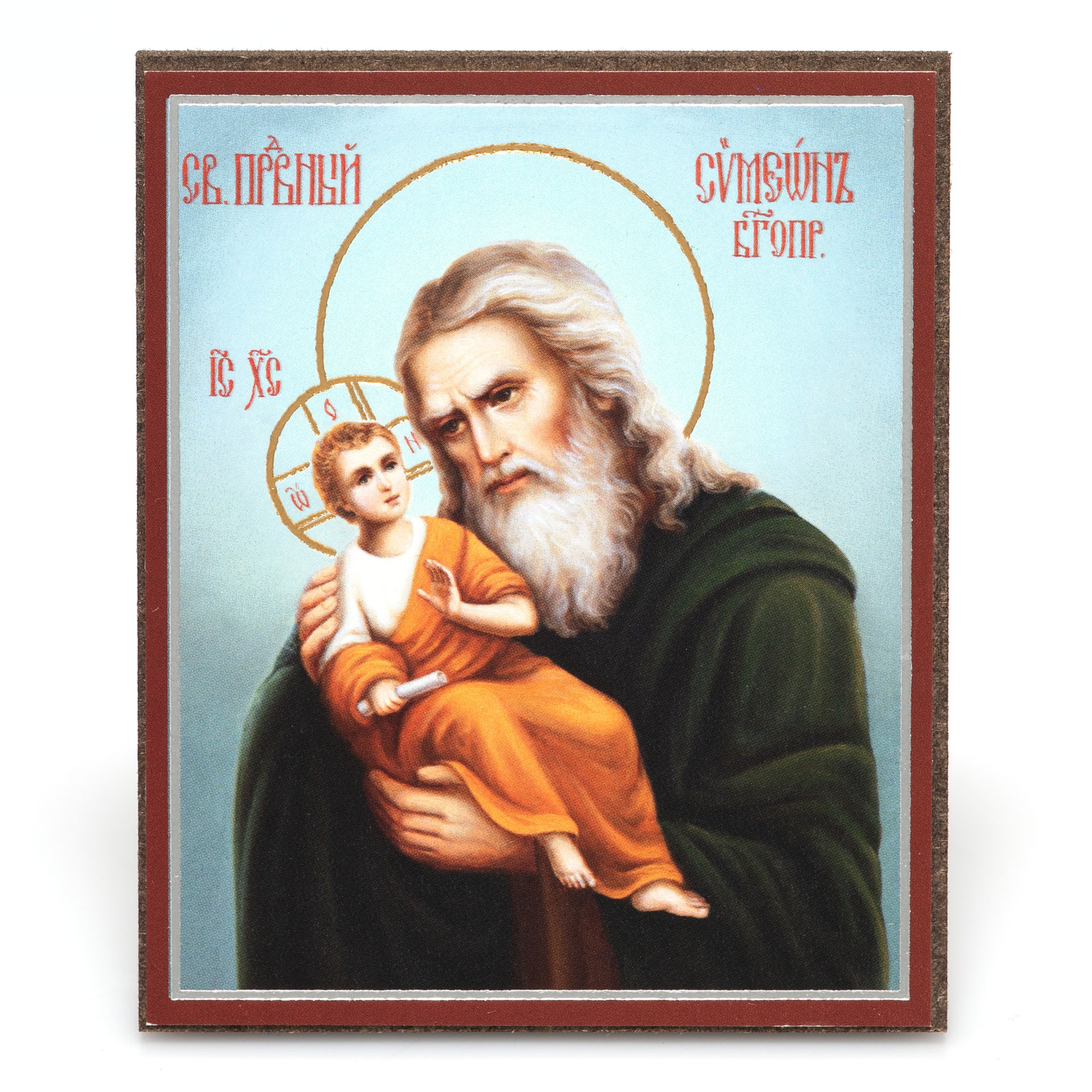 Икона на деревянном планшете 6х9 двойное тиснение, аннотация, упаковка Симеон Богоприимец (2)