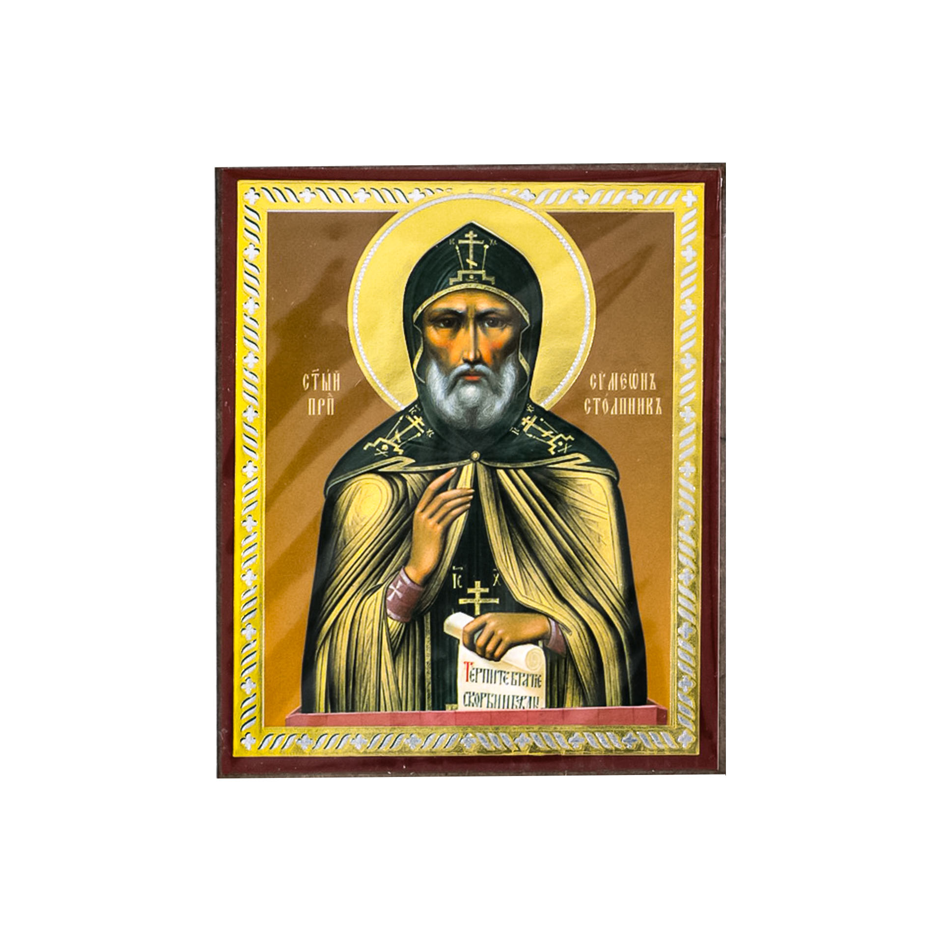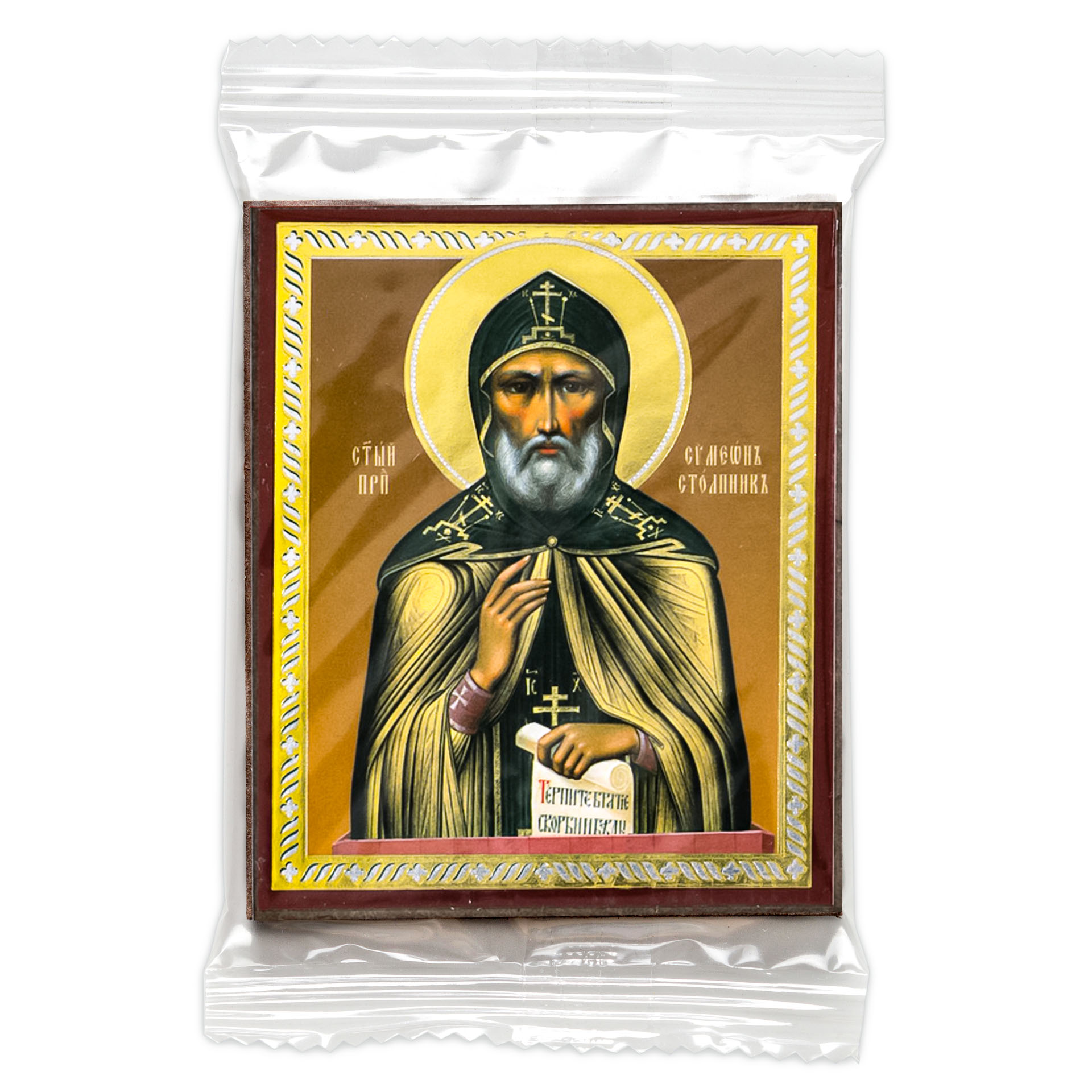 Икона на деревянном планшете 6х9 двойное тиснение, аннотация, упаковка Симеон Столпник