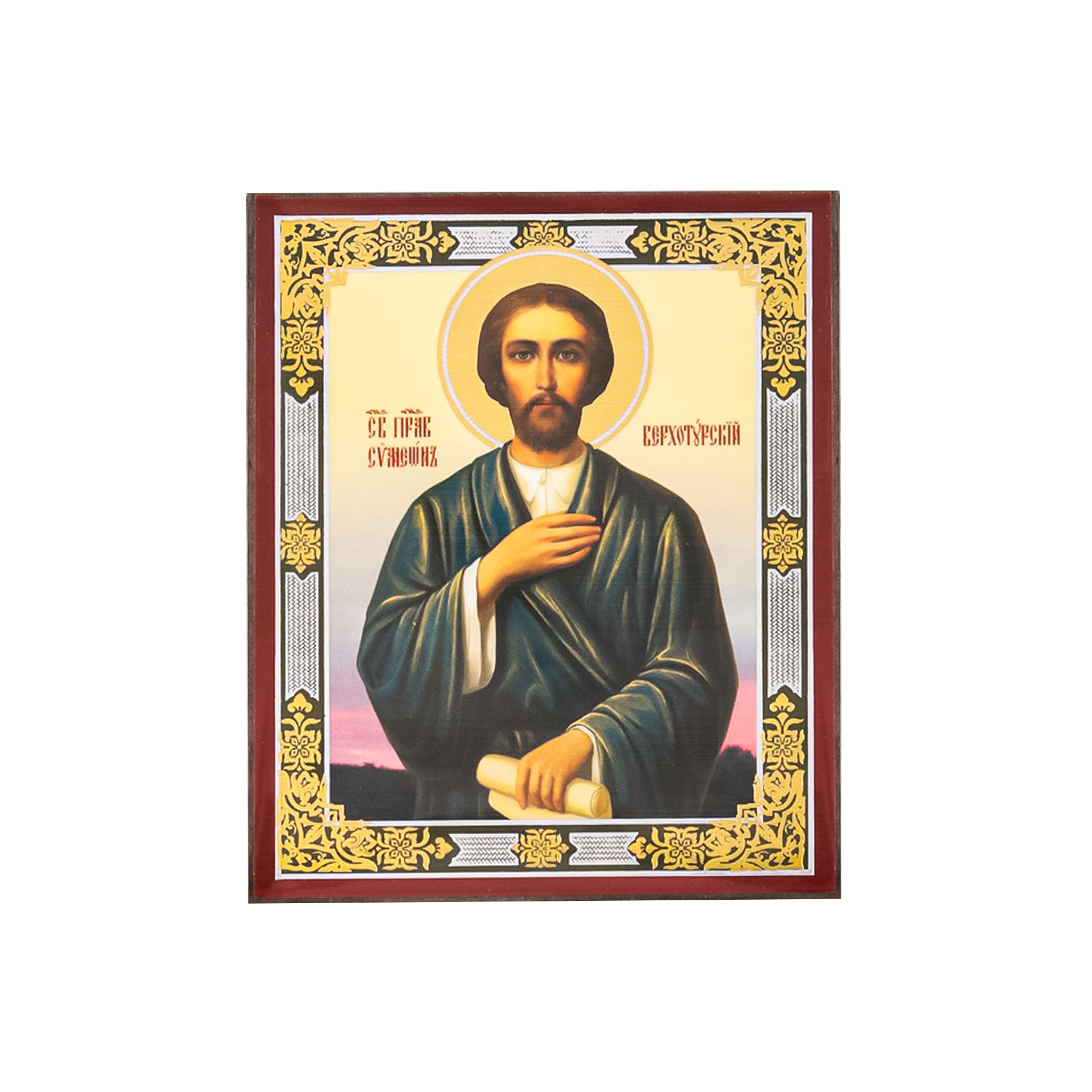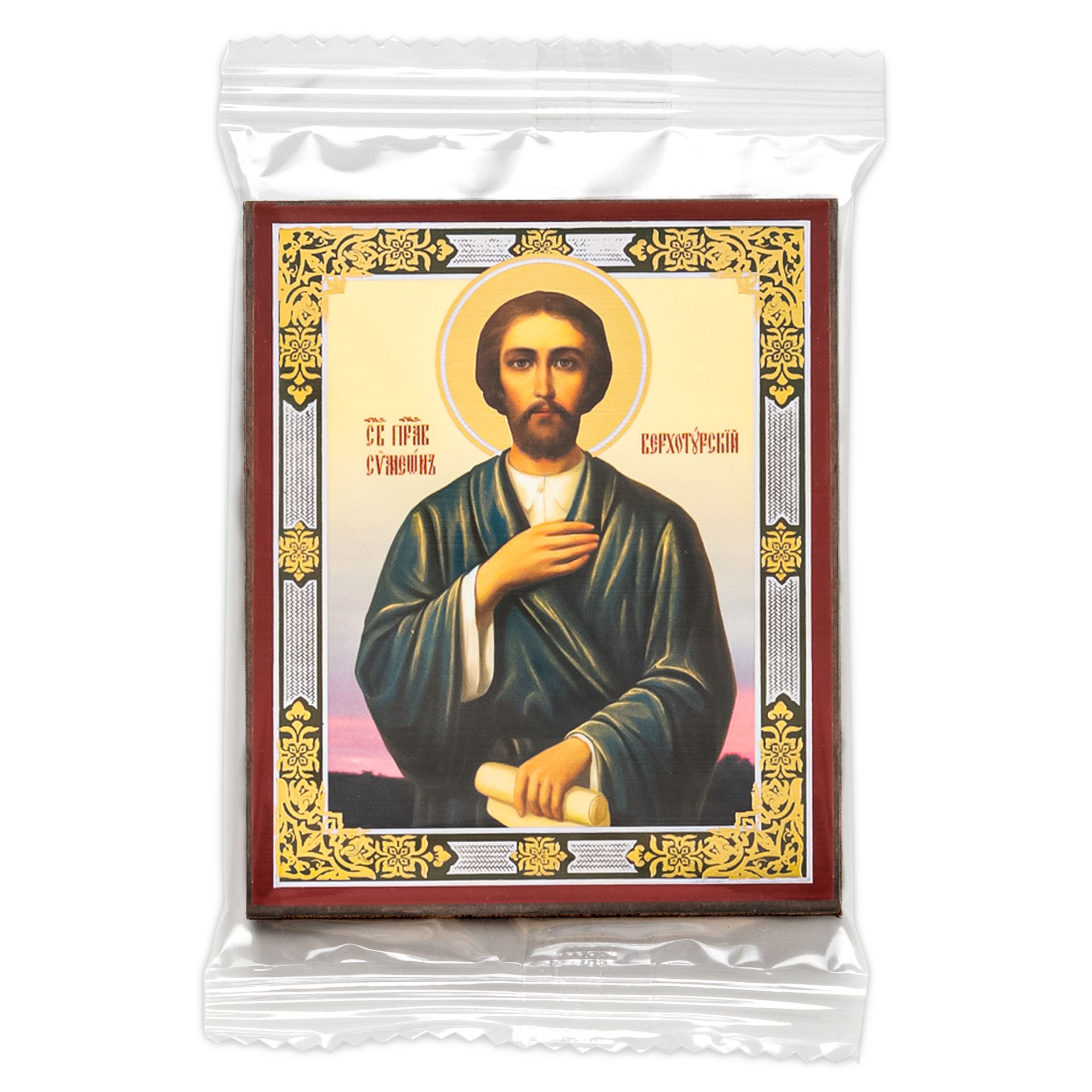 Икона на деревянном планшете 6х9 двойное тиснение, аннотация, упаковка Симеон Верхотурский 3