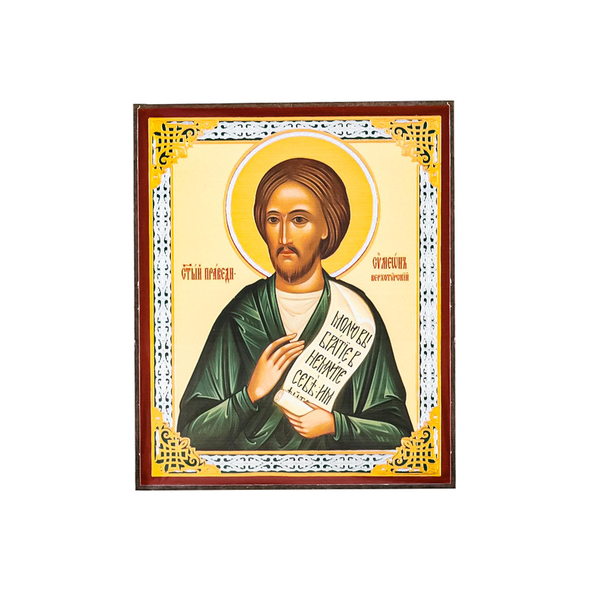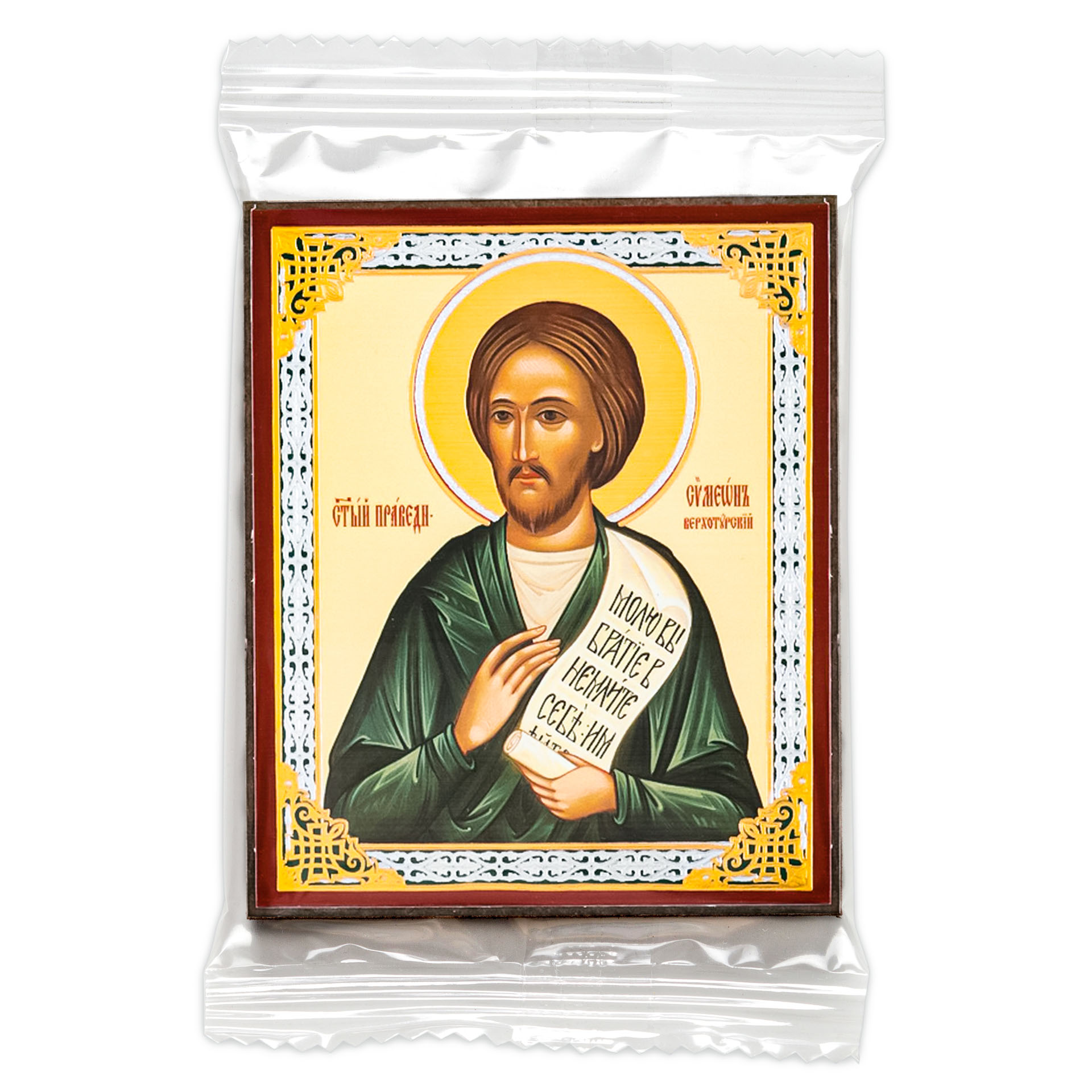 Икона на деревянном планшете 6х9 двойное тиснение, аннотация, упаковка Симеон Верхотурский 4