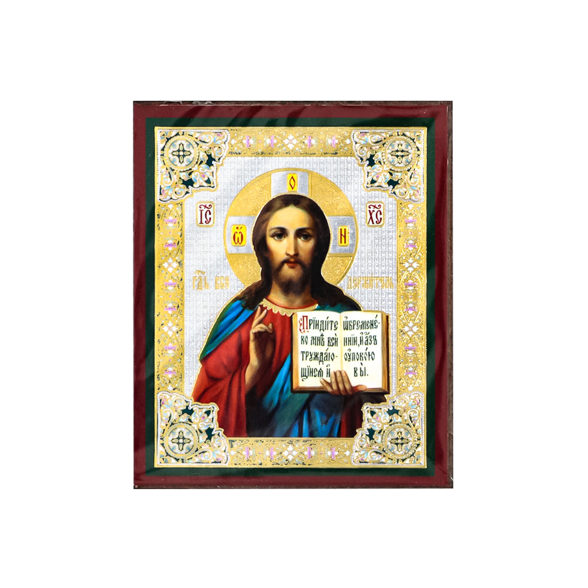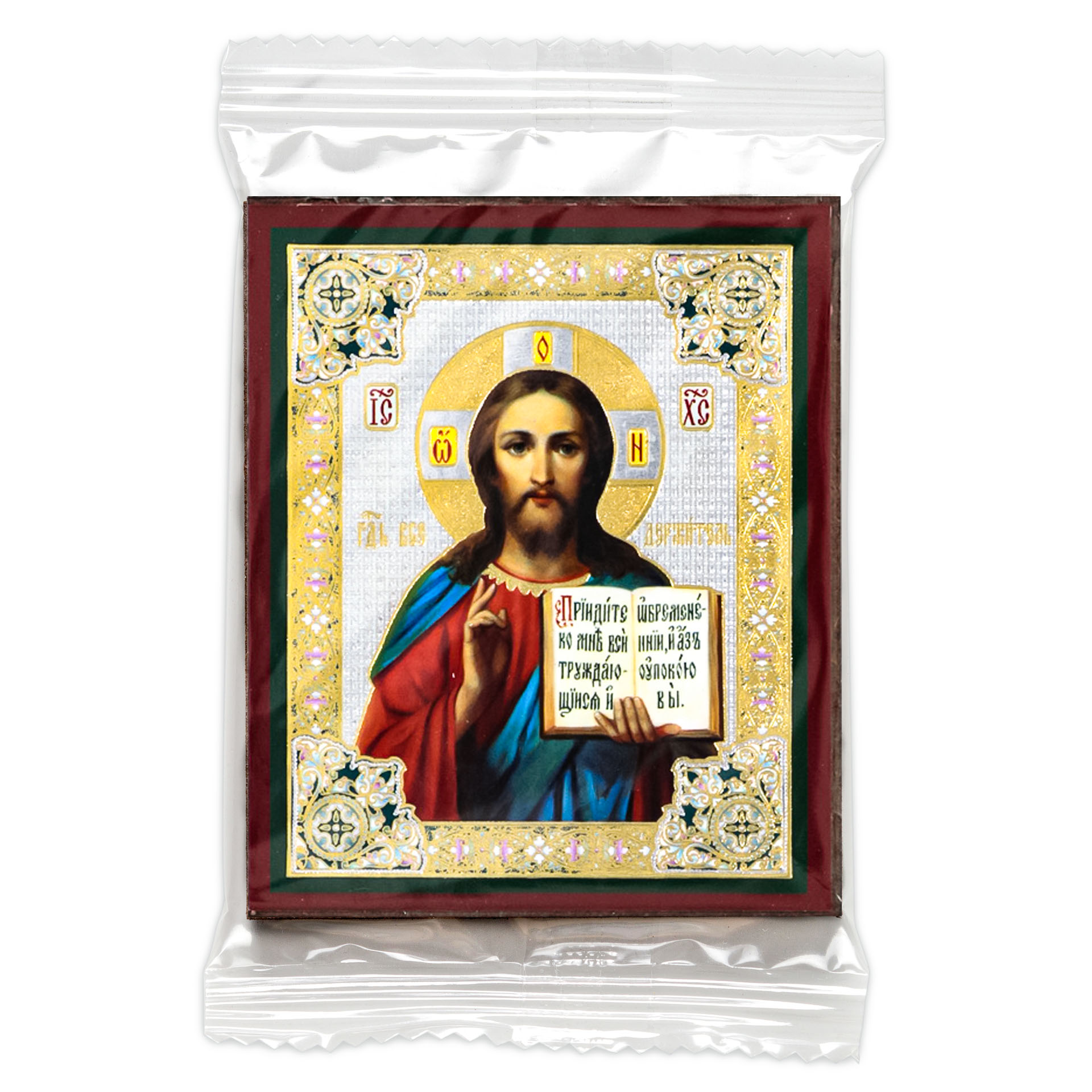 Икона на деревянном планшете 6х9 двойное тиснение, аннотация, упаковка Спаситель 14