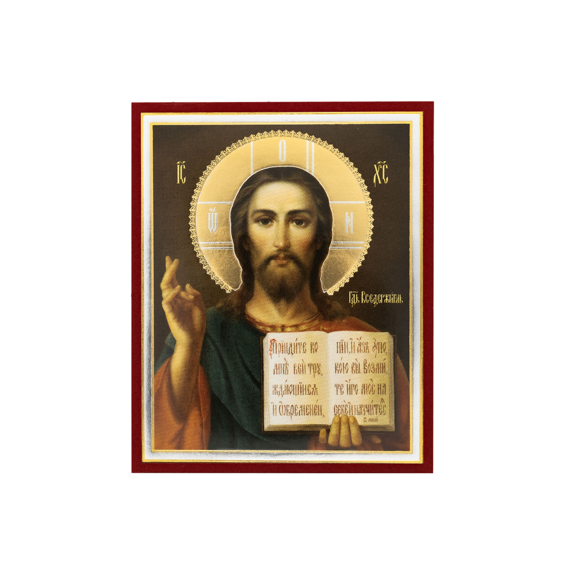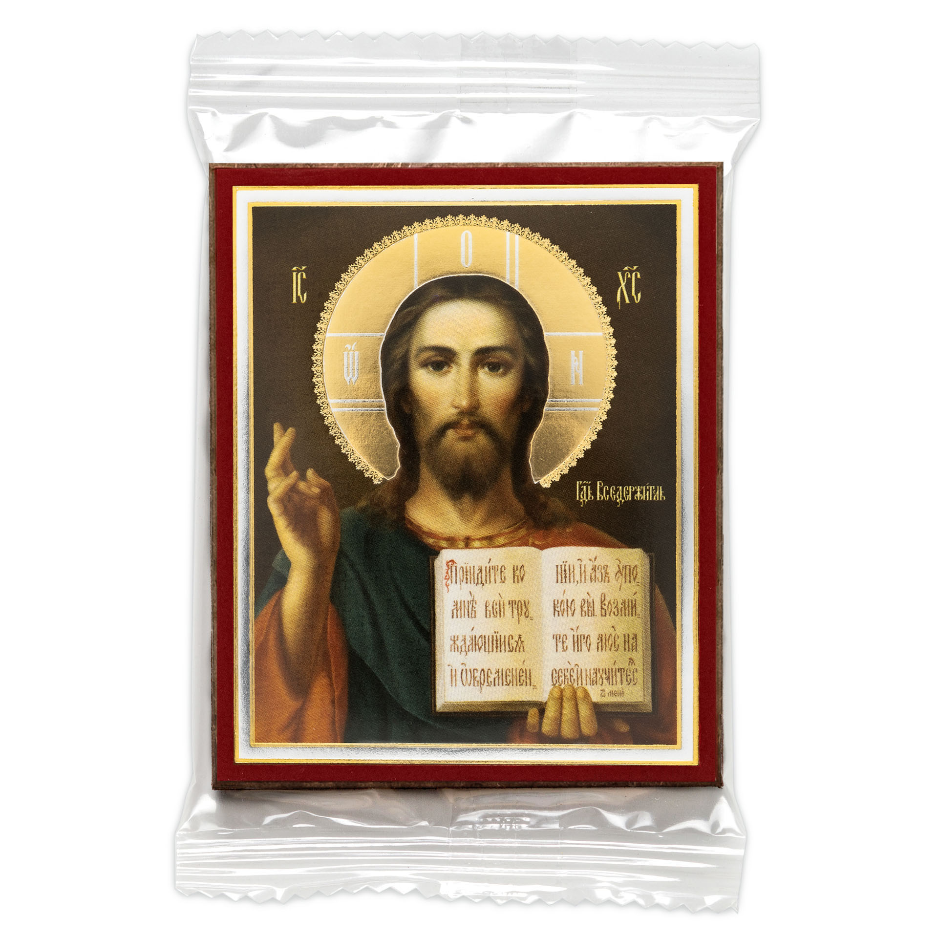 Икона на деревянном планшете 6х9 двойное тиснение, аннотация, упаковка Спаситель 38
