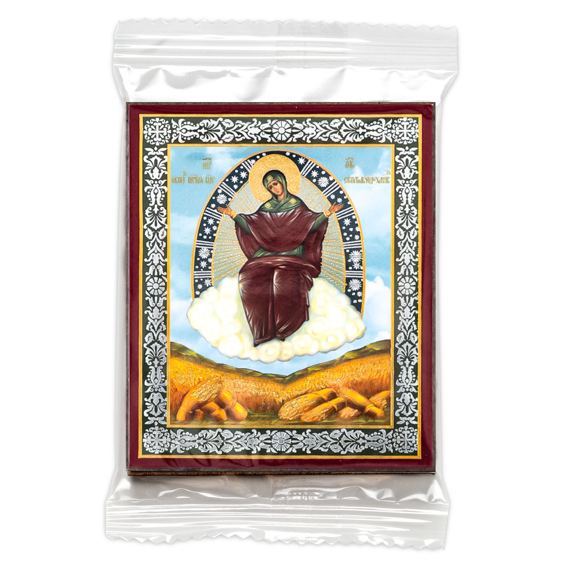 Икона на деревянном планшете 6х9 двойное тиснение, аннотация, упаковка Спорительница хлебов