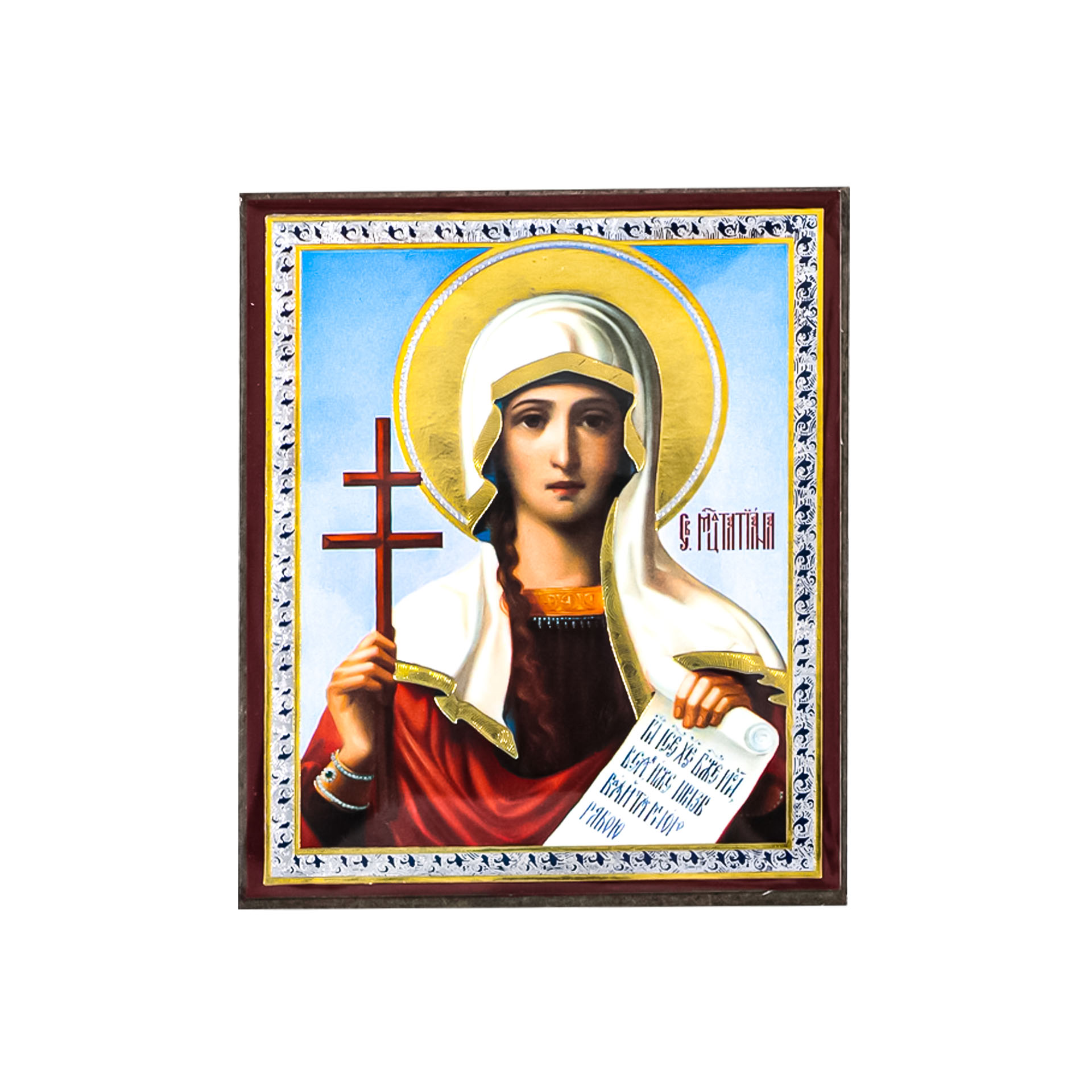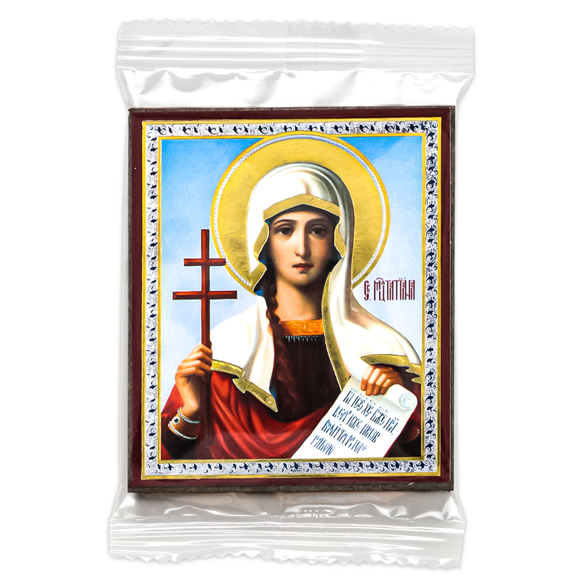 Икона на деревянном планшете 6х9 двойное тиснение, аннотация, упаковка Татиана св. Римская, дева, мц.