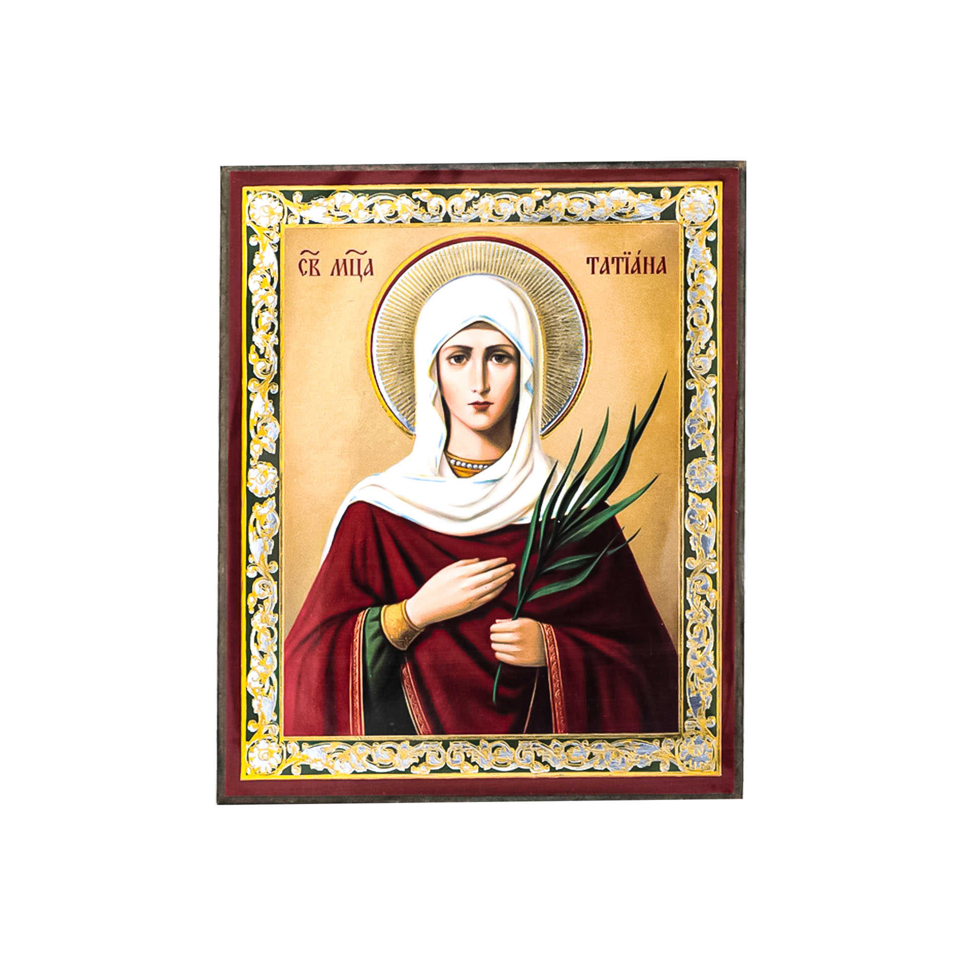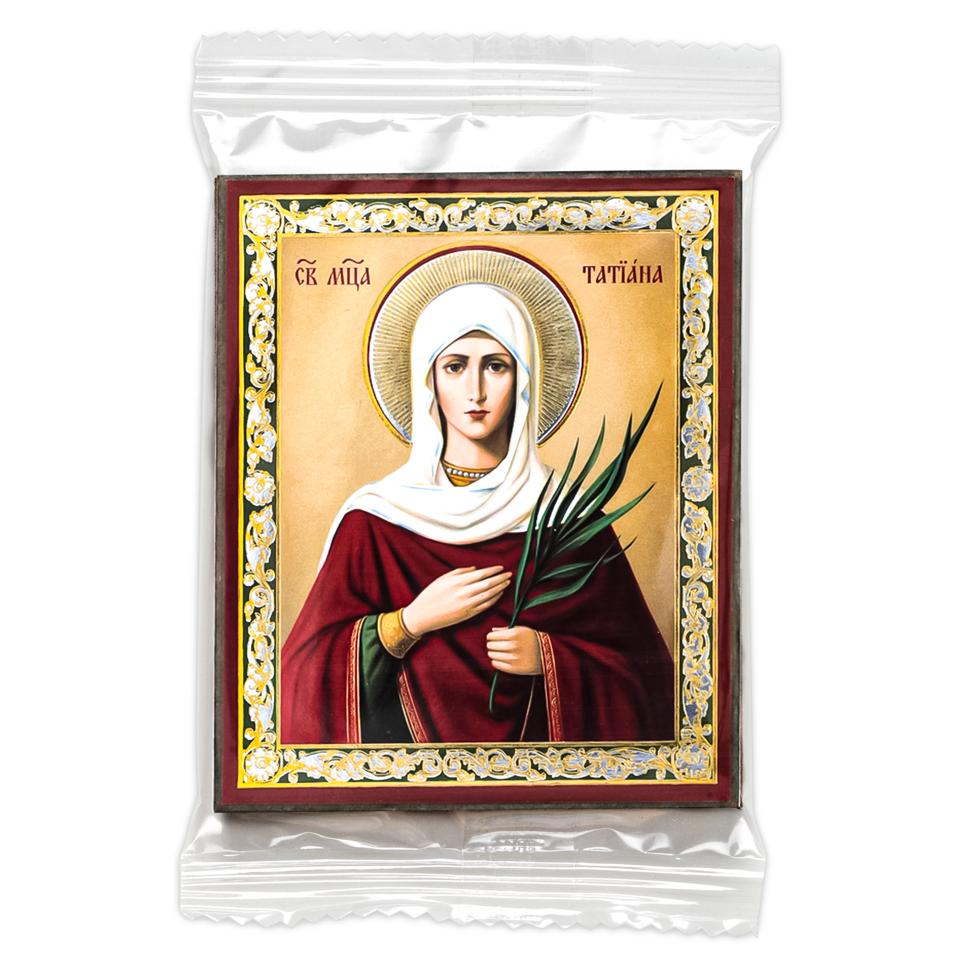 Икона на деревянном планшете 6х9 двойное тиснение, аннотация, упаковка Татиана св. Римская, дева, мц. (2)