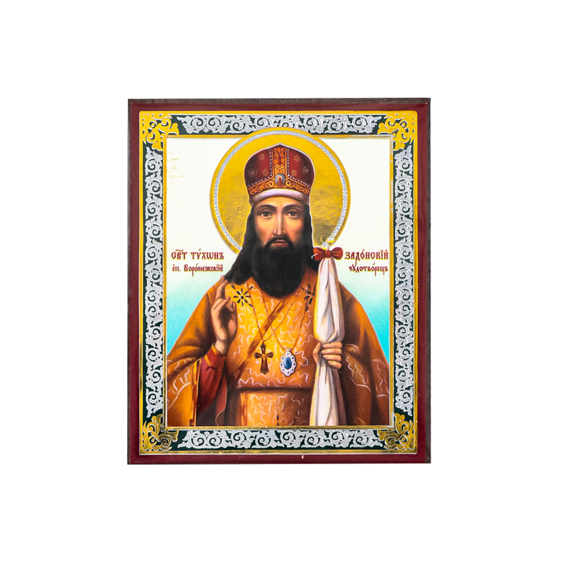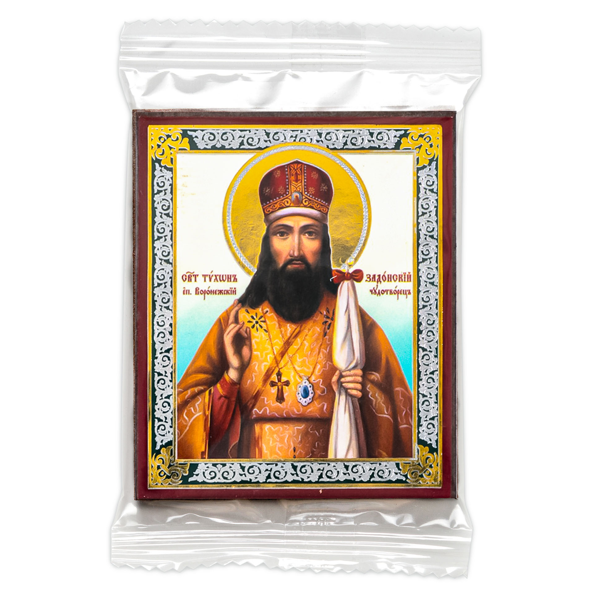 Икона на деревянном планшете 6х9 двойное тиснение, аннотация, упаковка Тихон Задонский
