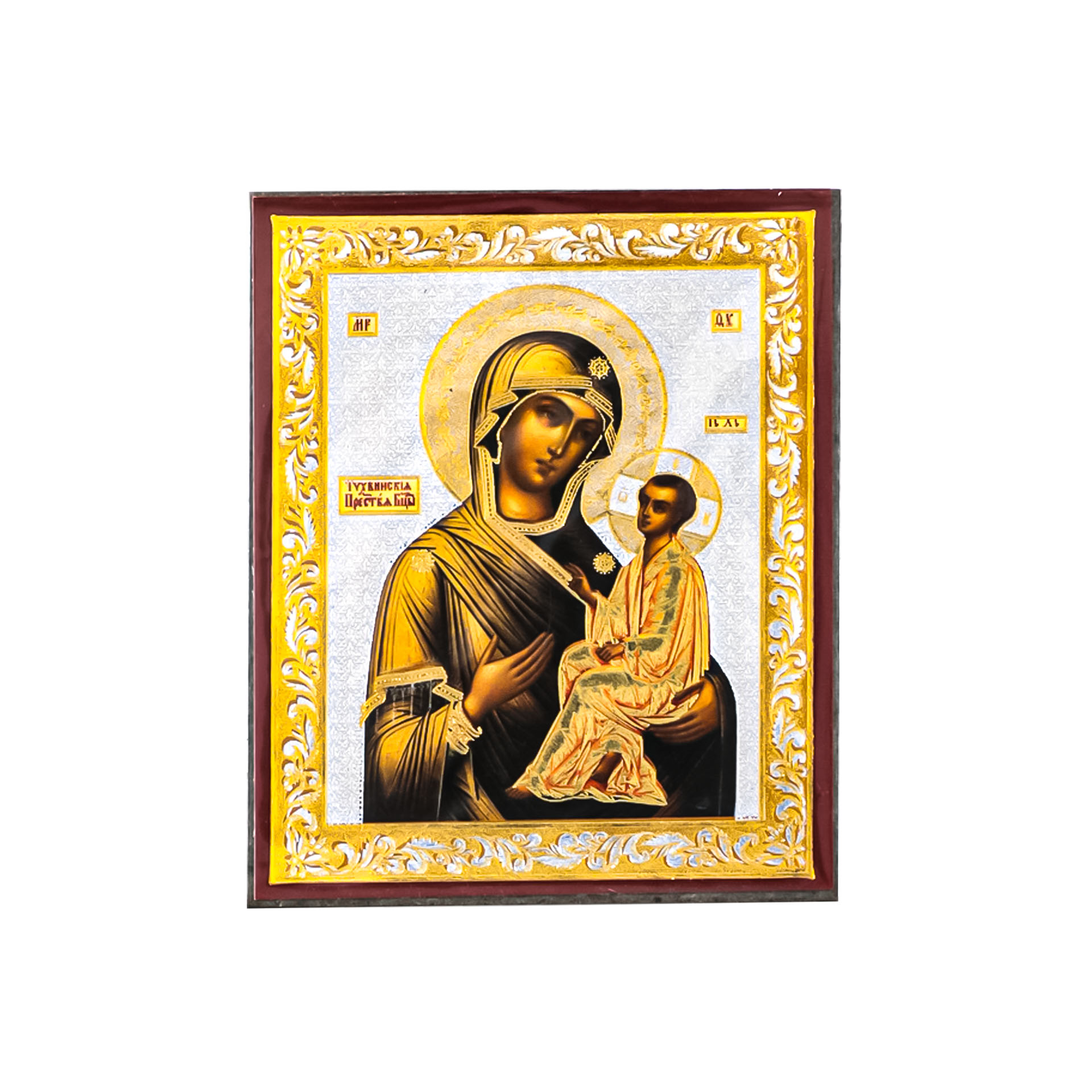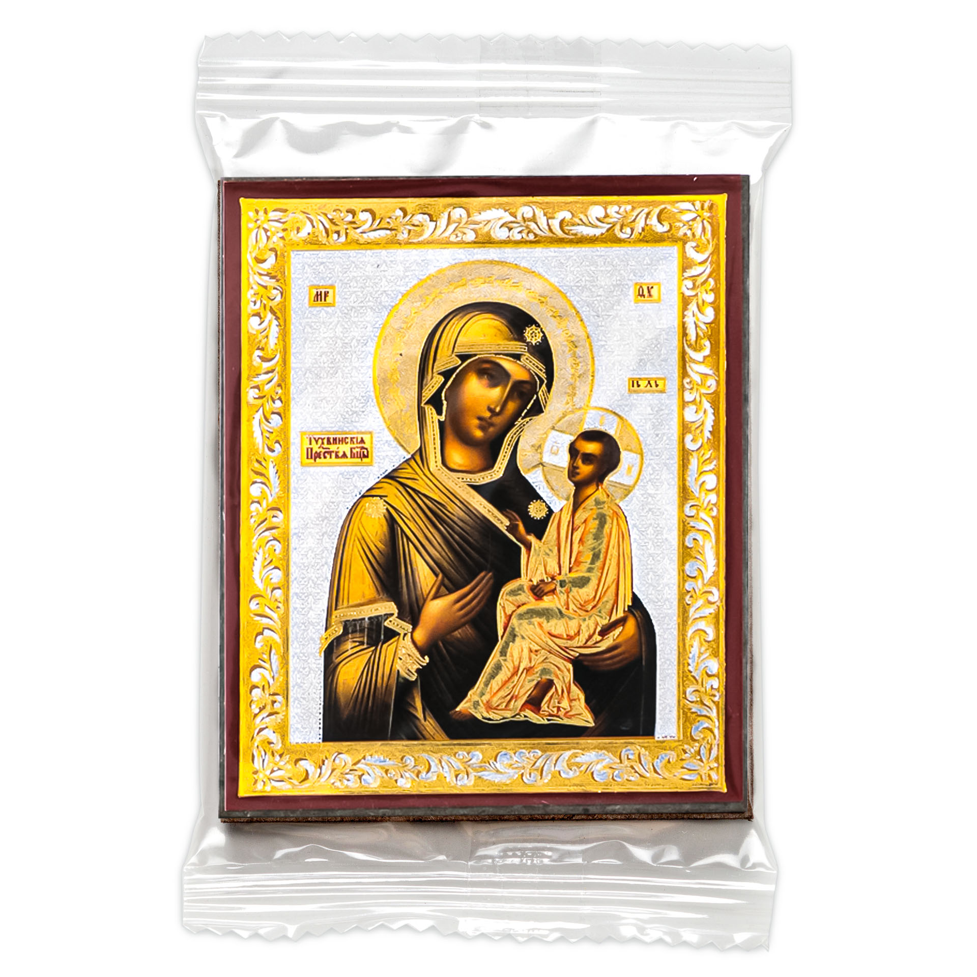 Икона на деревянном планшете 6х9 двойное тиснение, аннотация, упаковка Тихвинская БМ 2