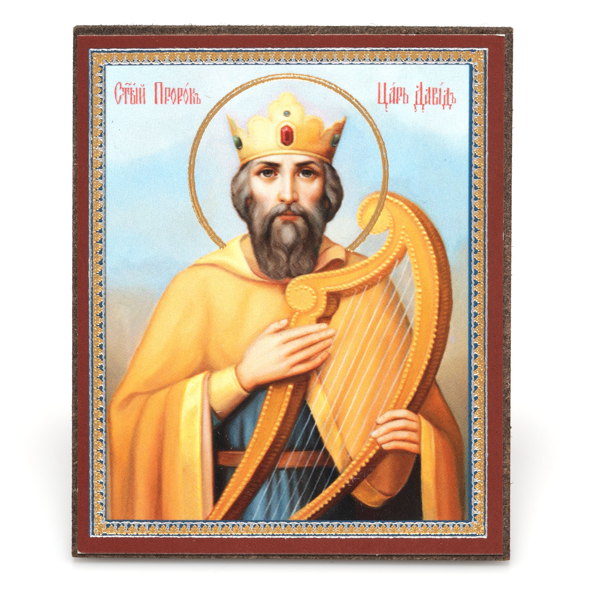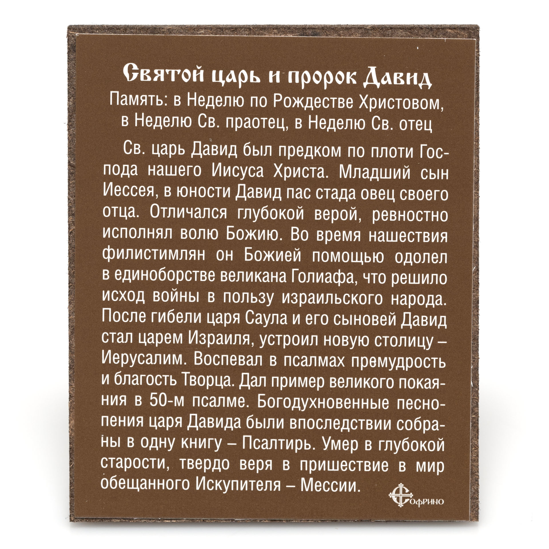 Икона на деревянном планшете 6х9 двойное тиснение, аннотация, упаковка Царь Давид 3