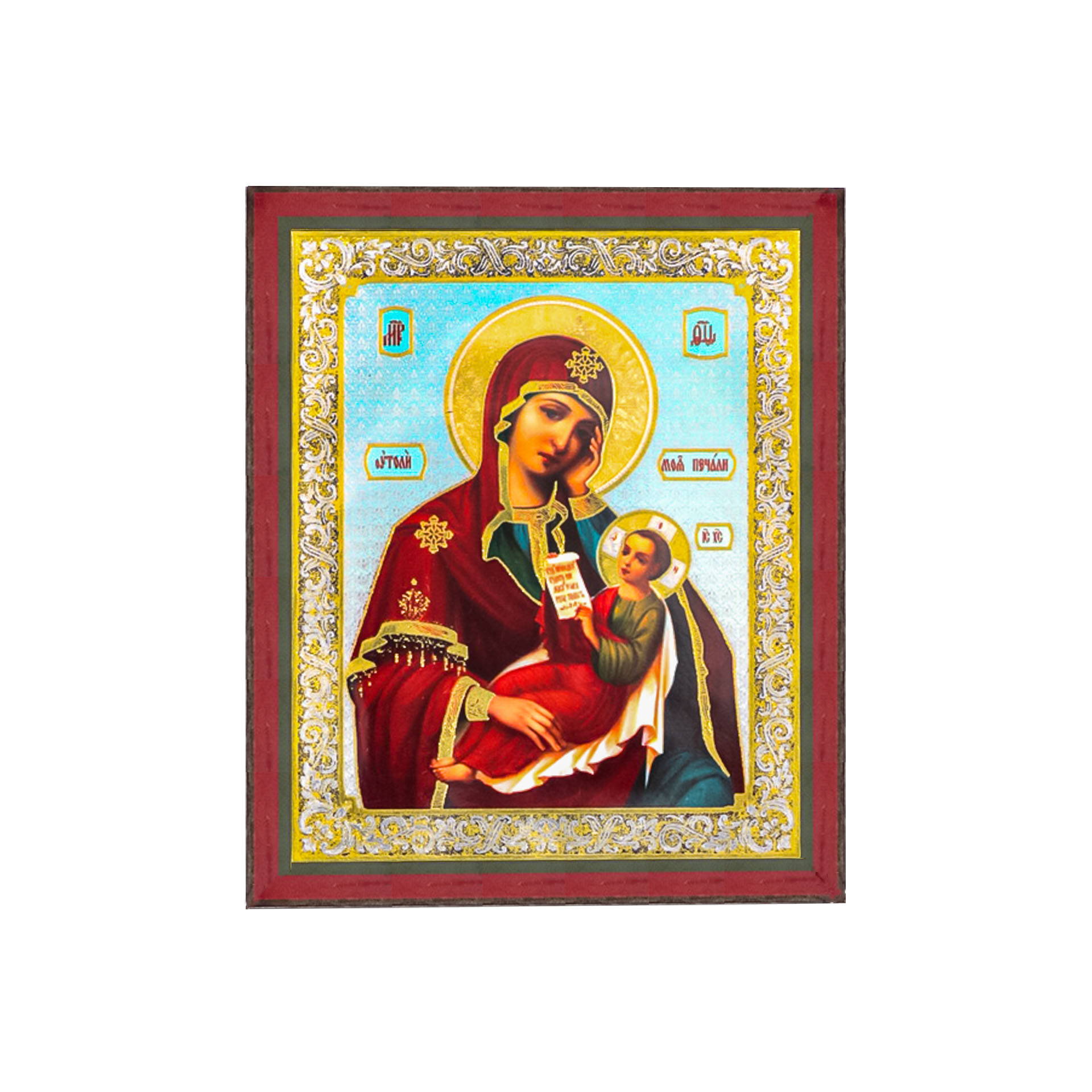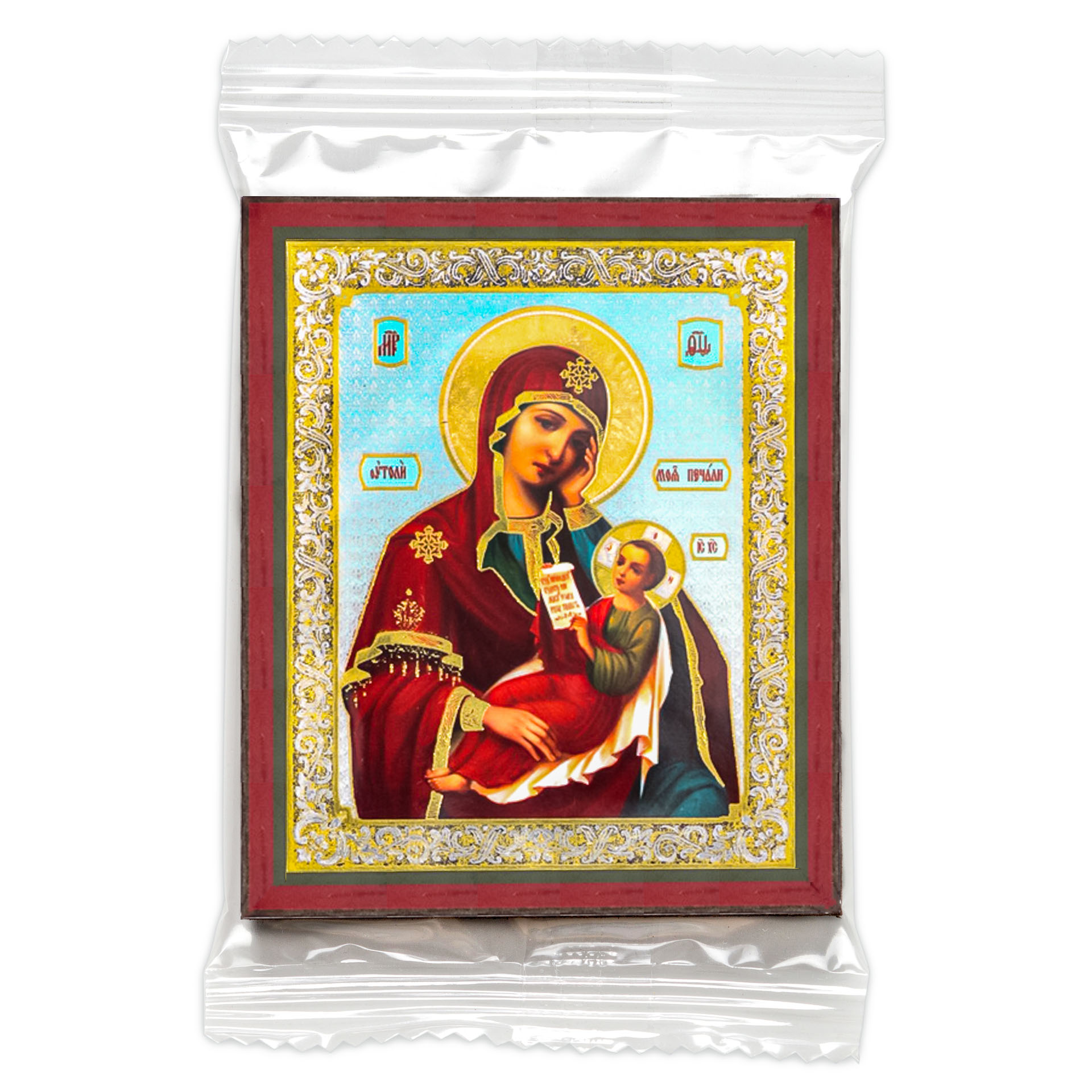 Икона на деревянном планшете 6х9 двойное тиснение, аннотация, упаковка Утоли моя печали БМ