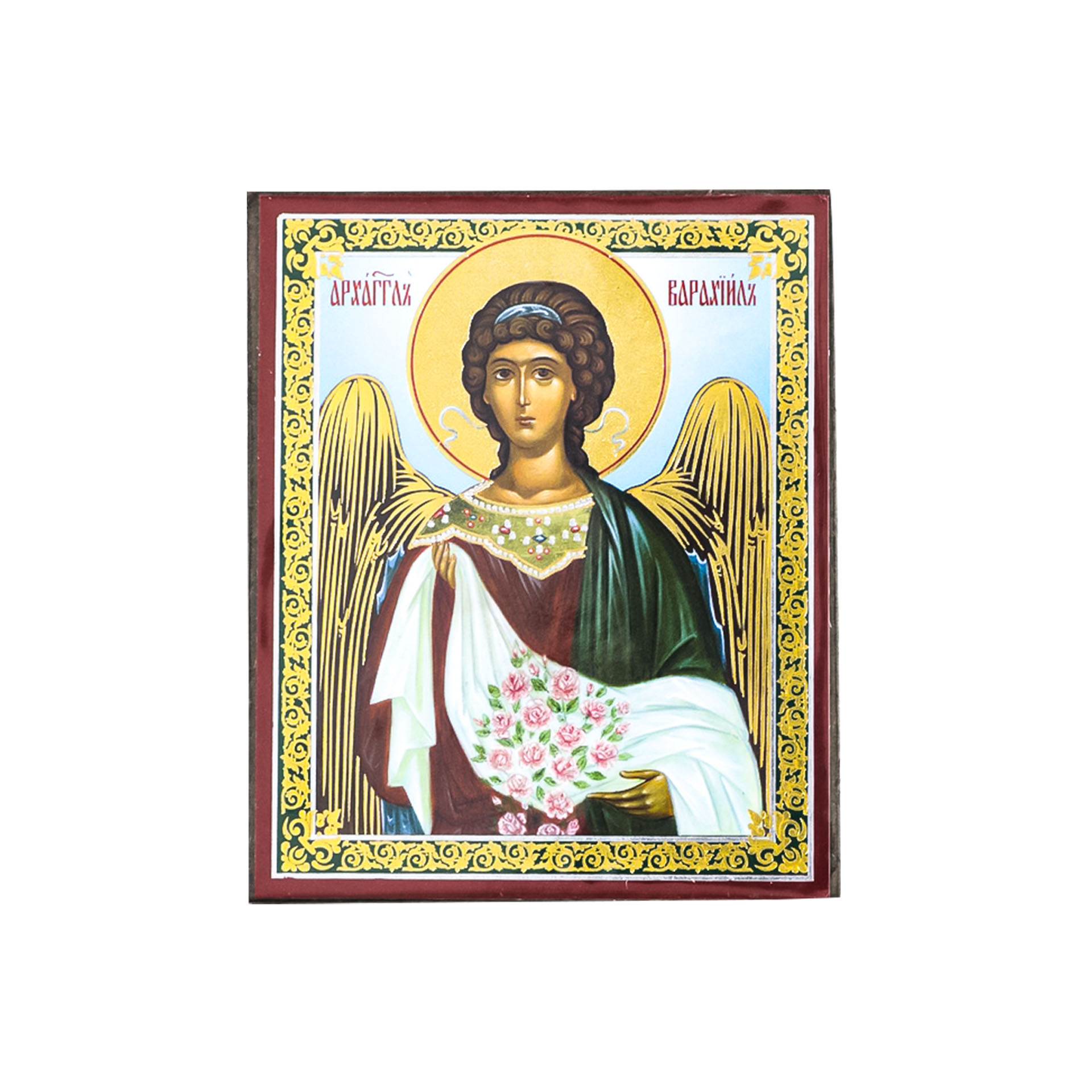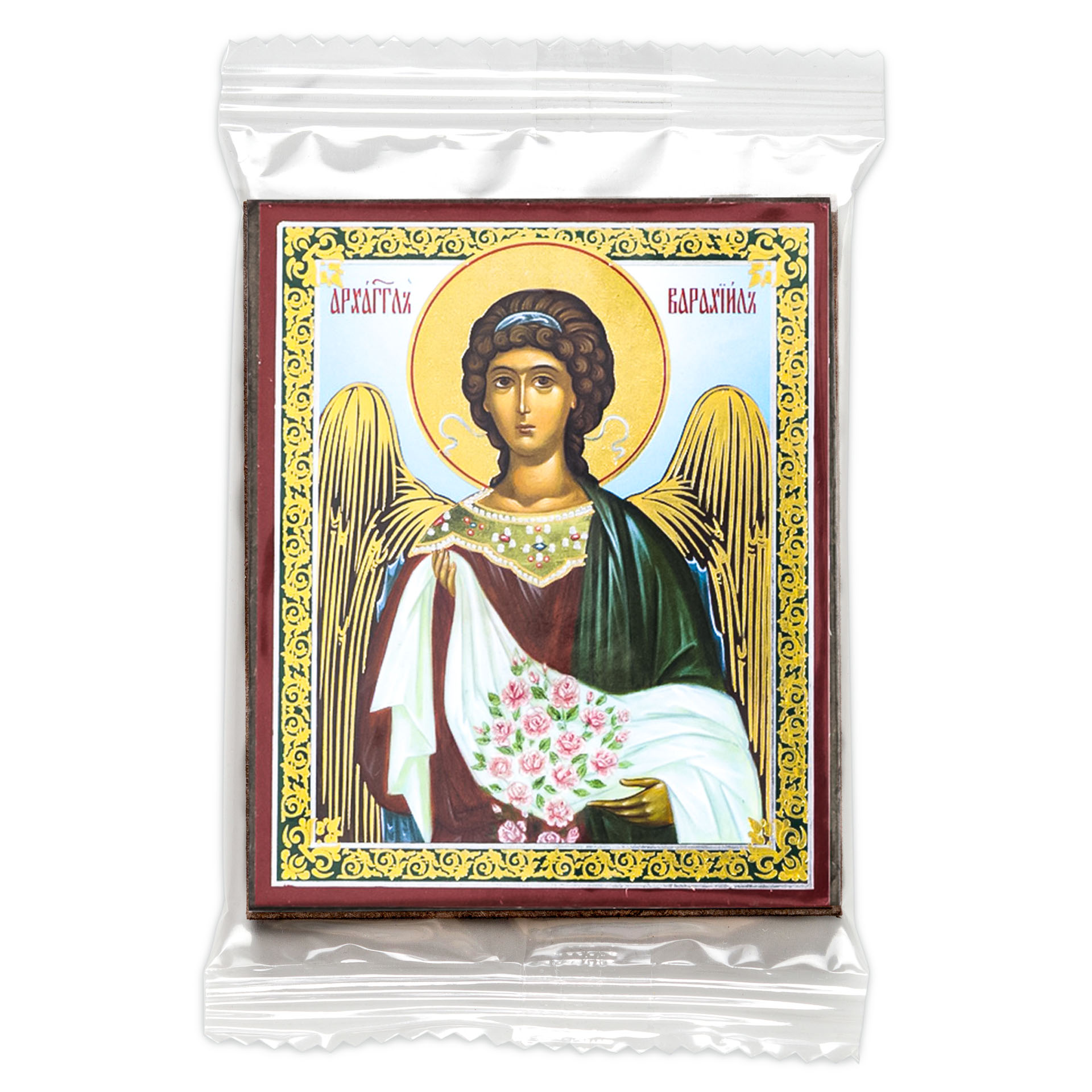 Икона на деревянном планшете 6х9 двойное тиснение, аннотация, упаковка Варахиил Архангел