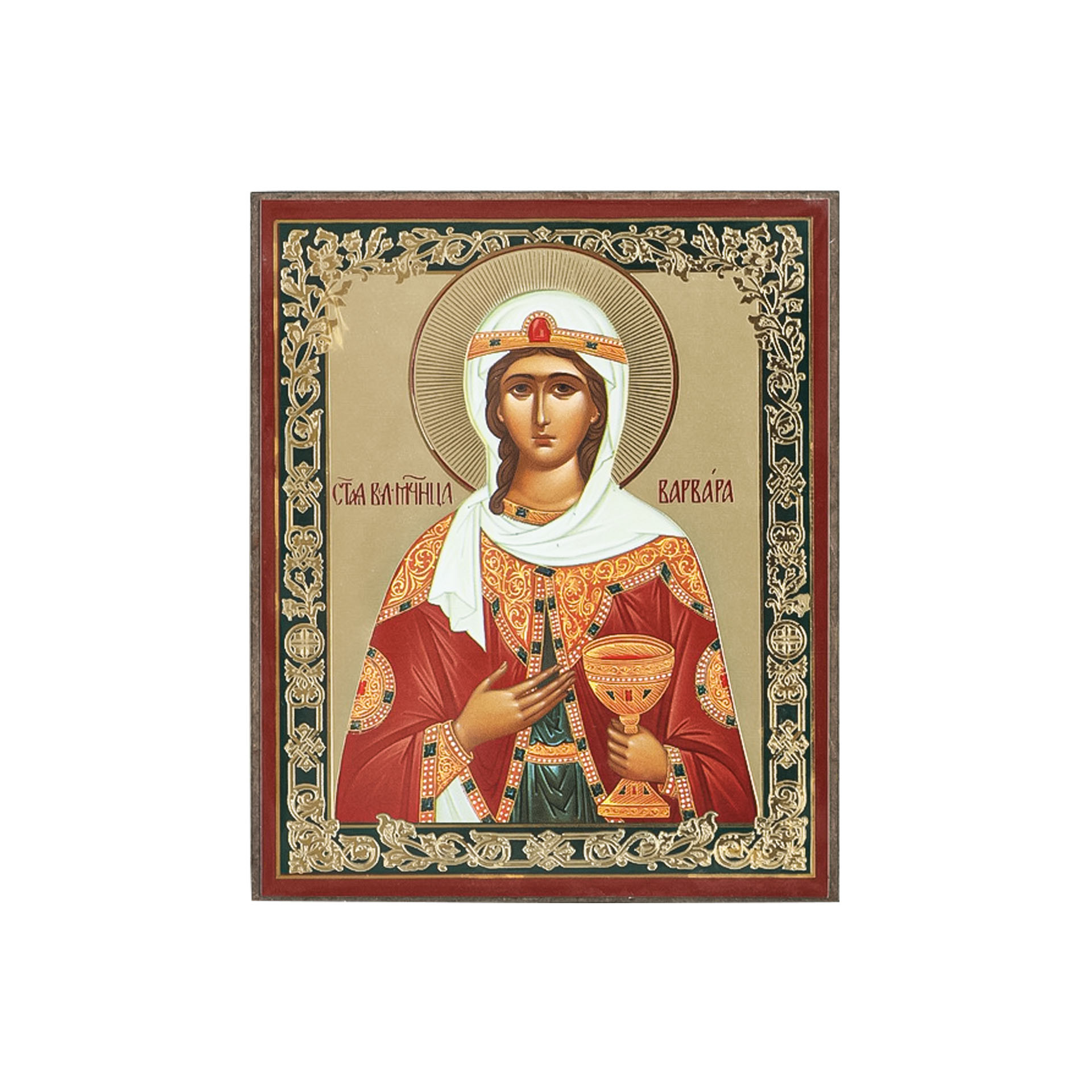 Икона на деревянном планшете 6х9 двойное тиснение, аннотация, упаковка Варвара Илиопольская, вмц. (5)