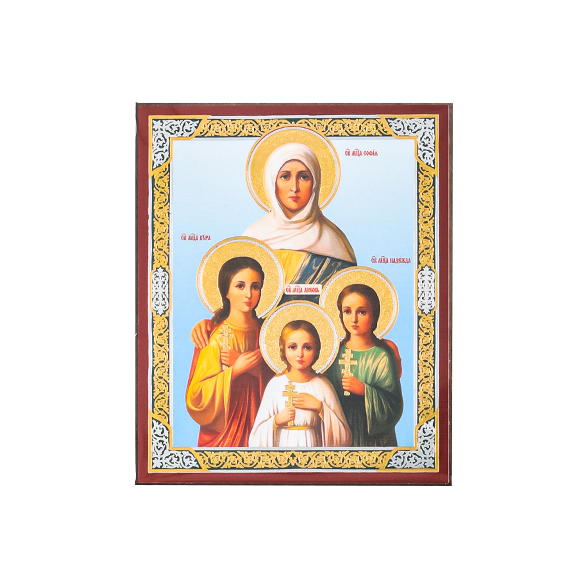 Икона на деревянном планшете 6х9 двойное тиснение, аннотация, упаковка Вера Надежда Любовь 4