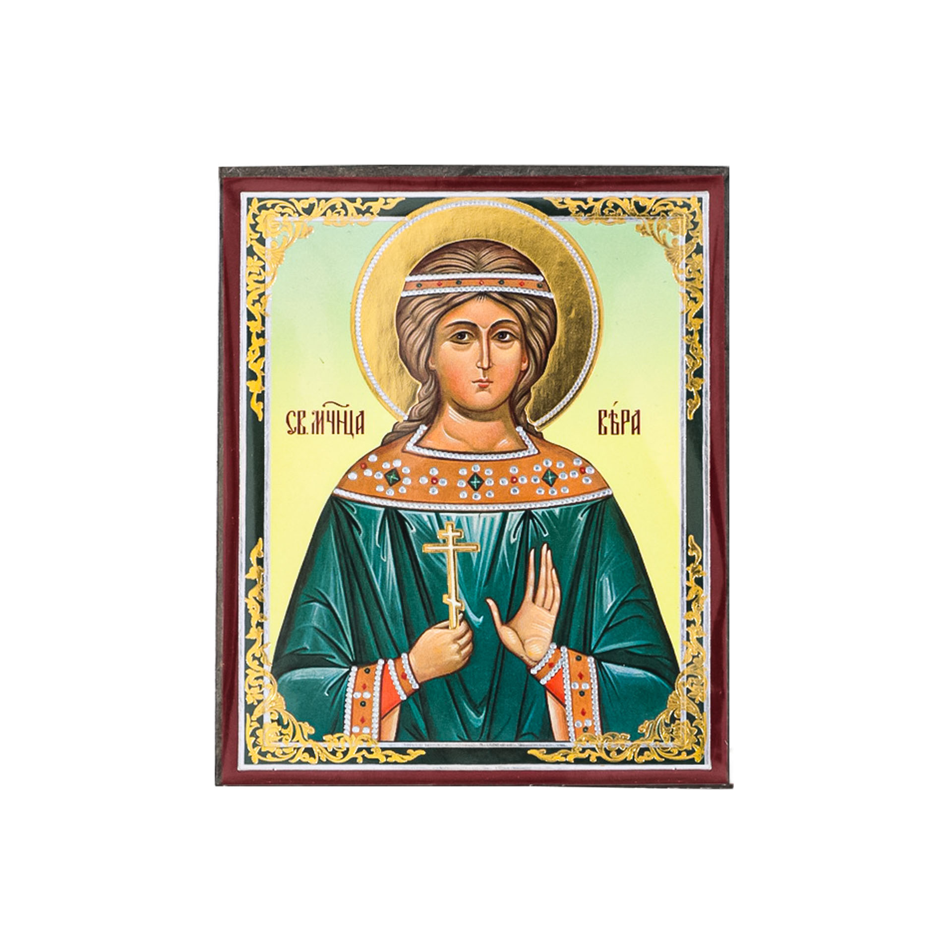 Икона на деревянном планшете 6х9 двойное тиснение, аннотация, упаковка Вера Римская, отроковица, мц. (2)