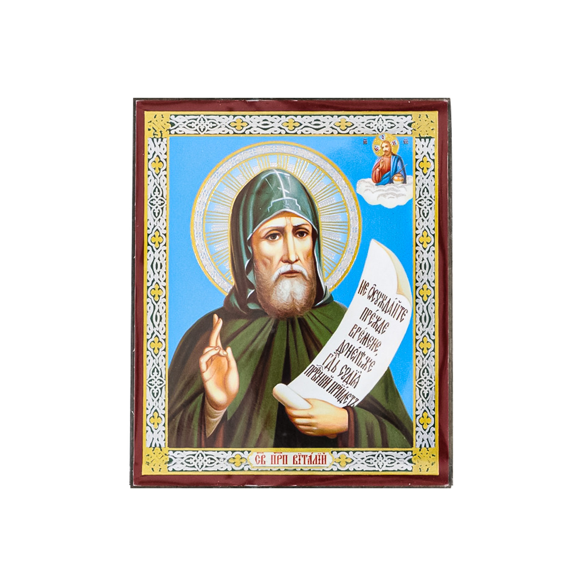 Икона на деревянном планшете 6х9 двойное тиснение, аннотация, упаковка Виталий 3