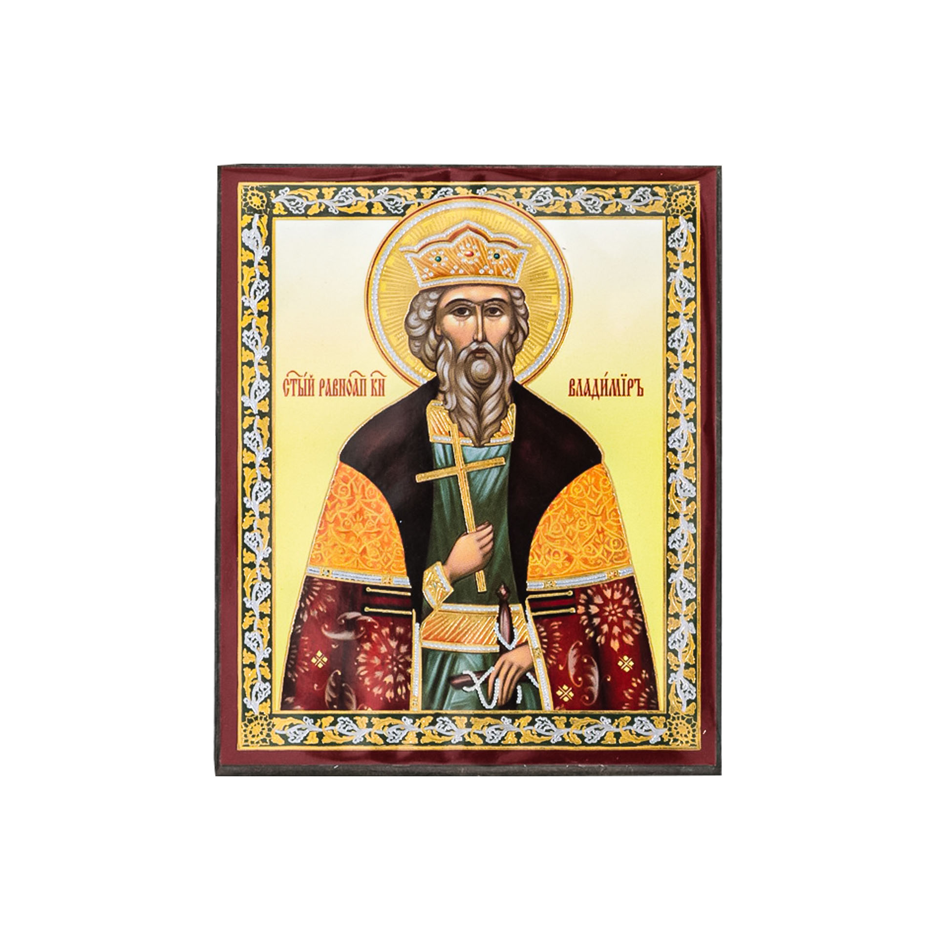 Икона на деревянном планшете 6х9 двойное тиснение, аннотация, упаковка Владимир, равн. князь Киевский 3