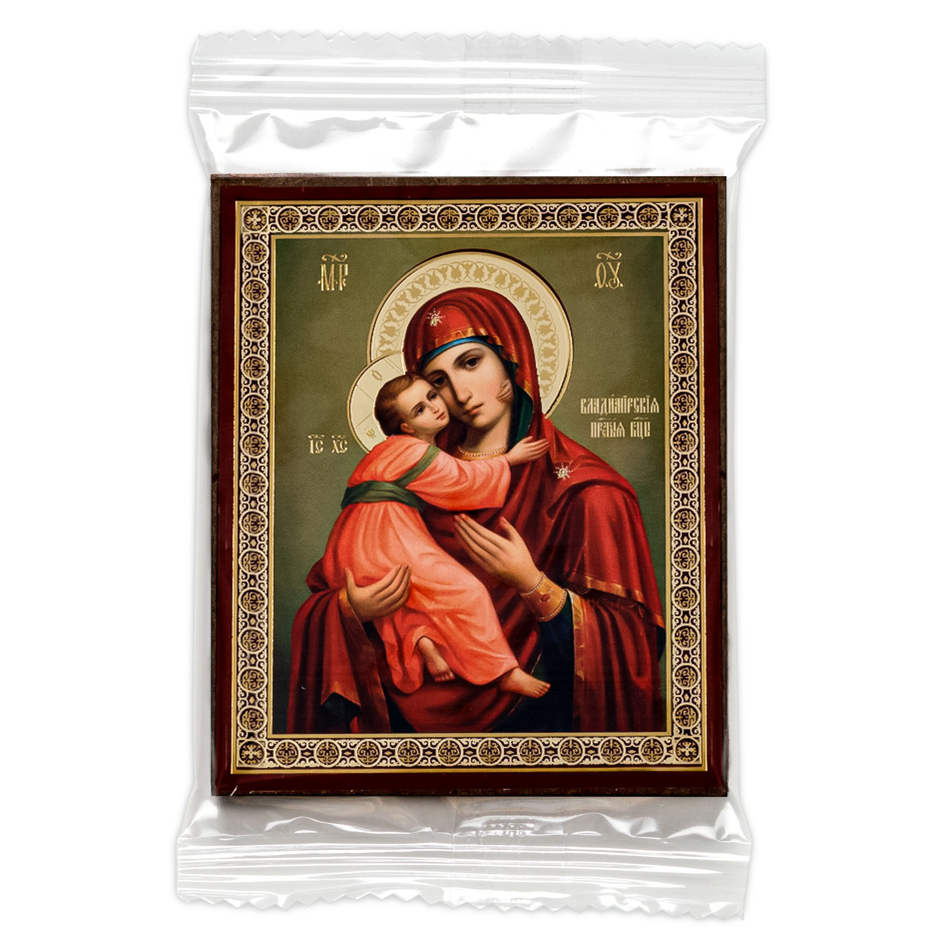 Икона на деревянном планшете 6х9 двойное тиснение, аннотация, упаковка Владимирская БМ 33