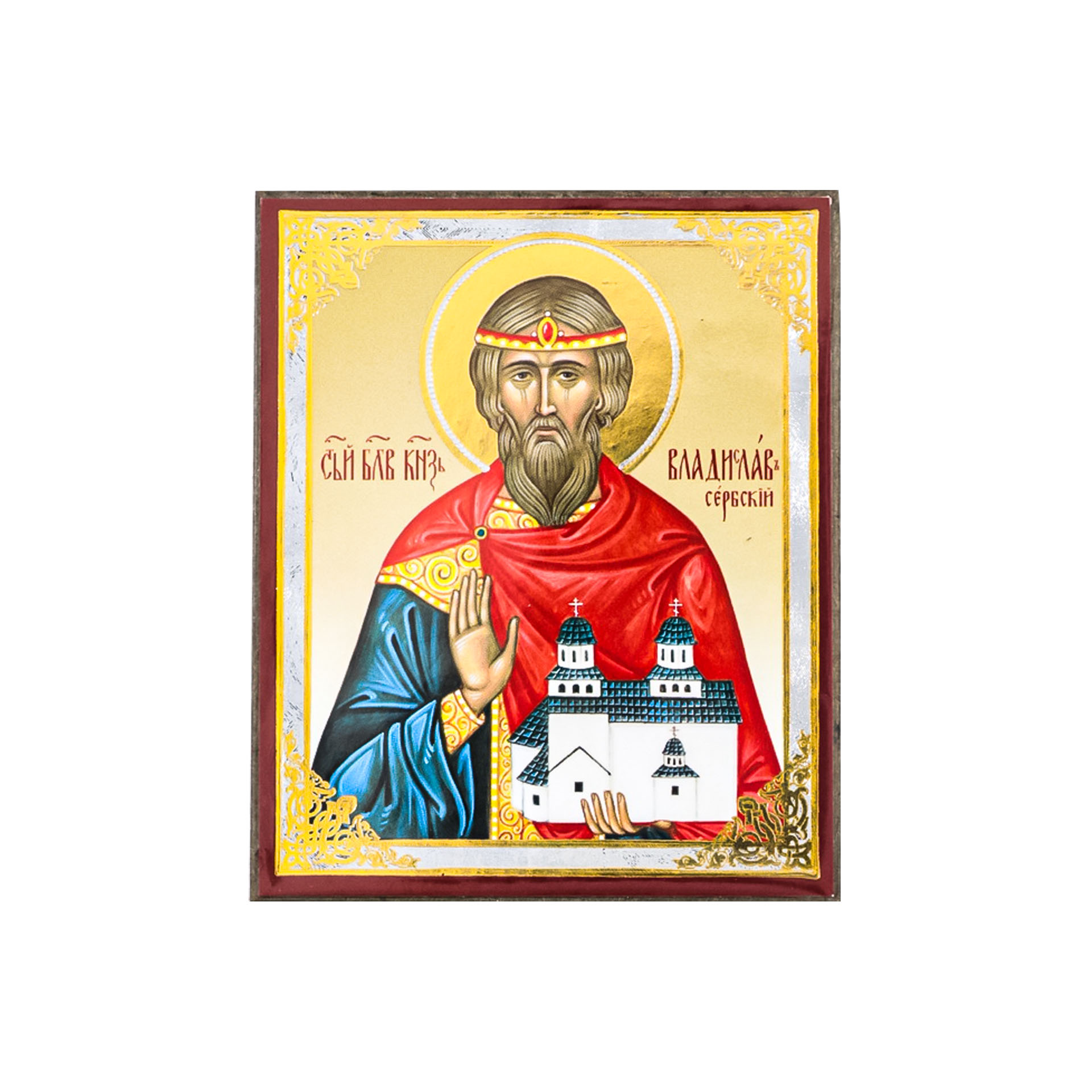 Икона на деревянном планшете 6х9 двойное тиснение, аннотация, упаковка Владислав