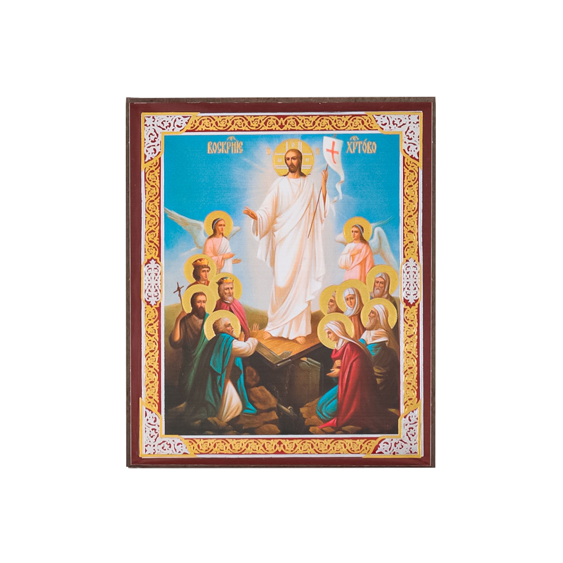 Икона на деревянном планшете 6х9 двойное тиснение, аннотация, упаковка Воскресение Христово 24