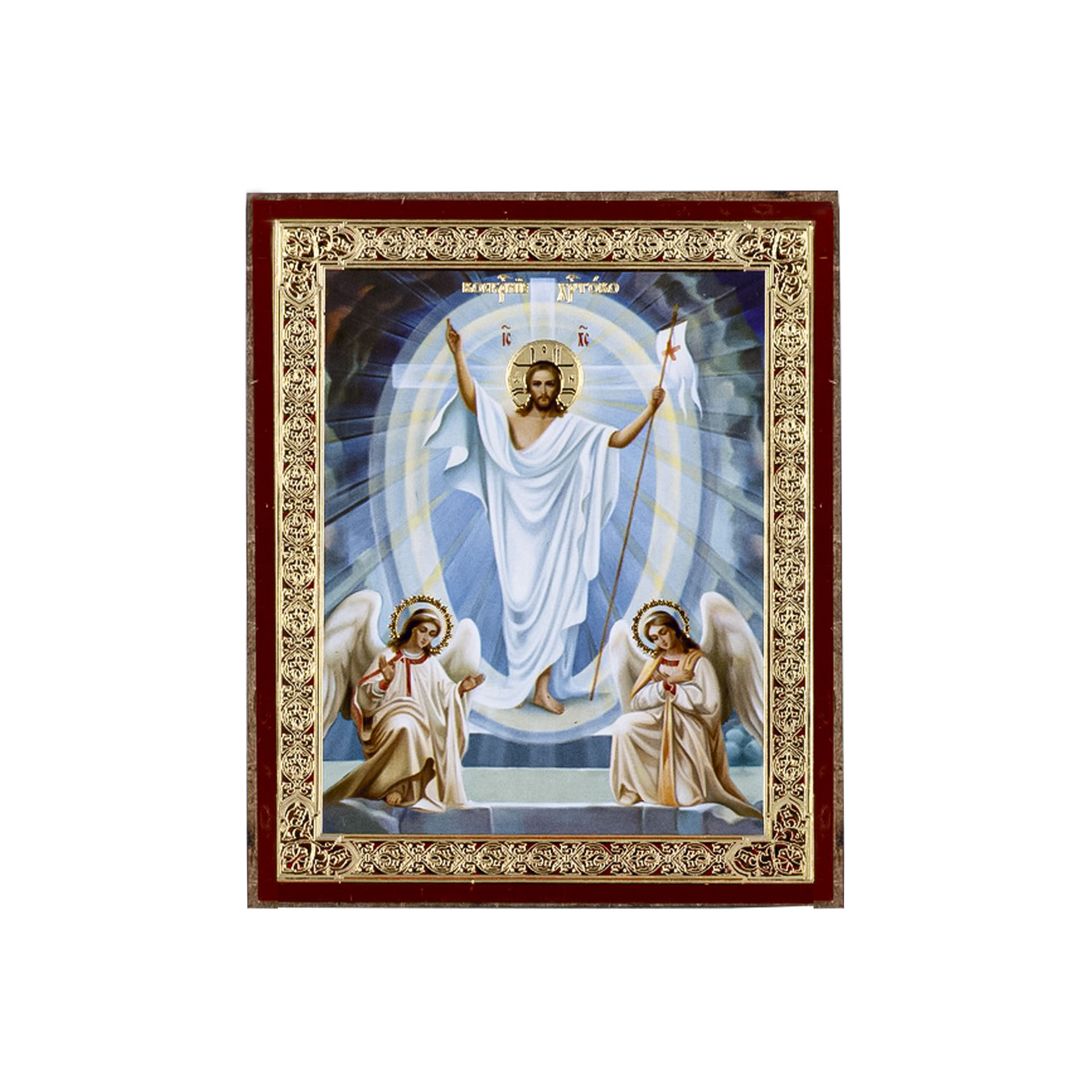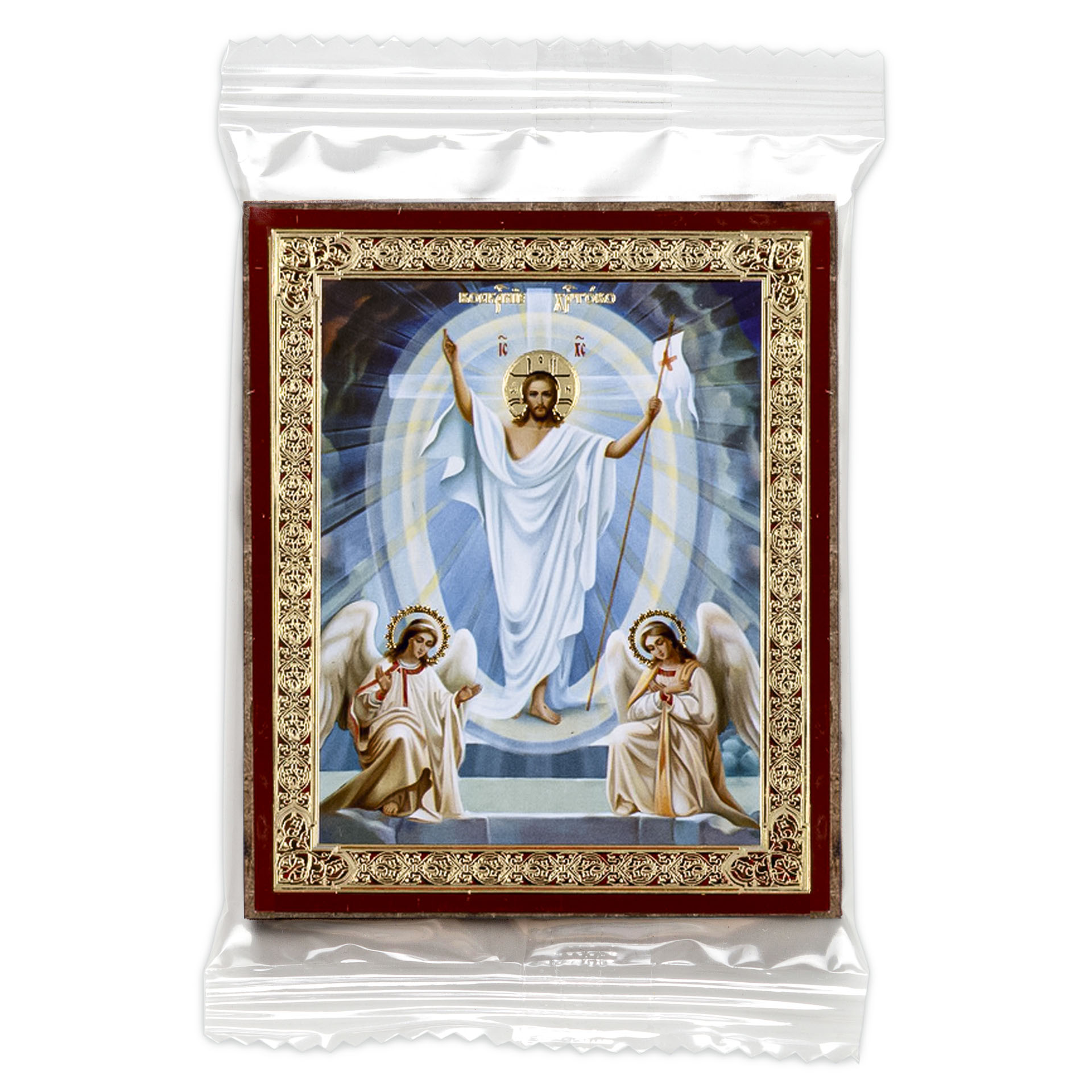 Икона на деревянном планшете 6х9 двойное тиснение, аннотация, упаковка Воскресение Христово 25