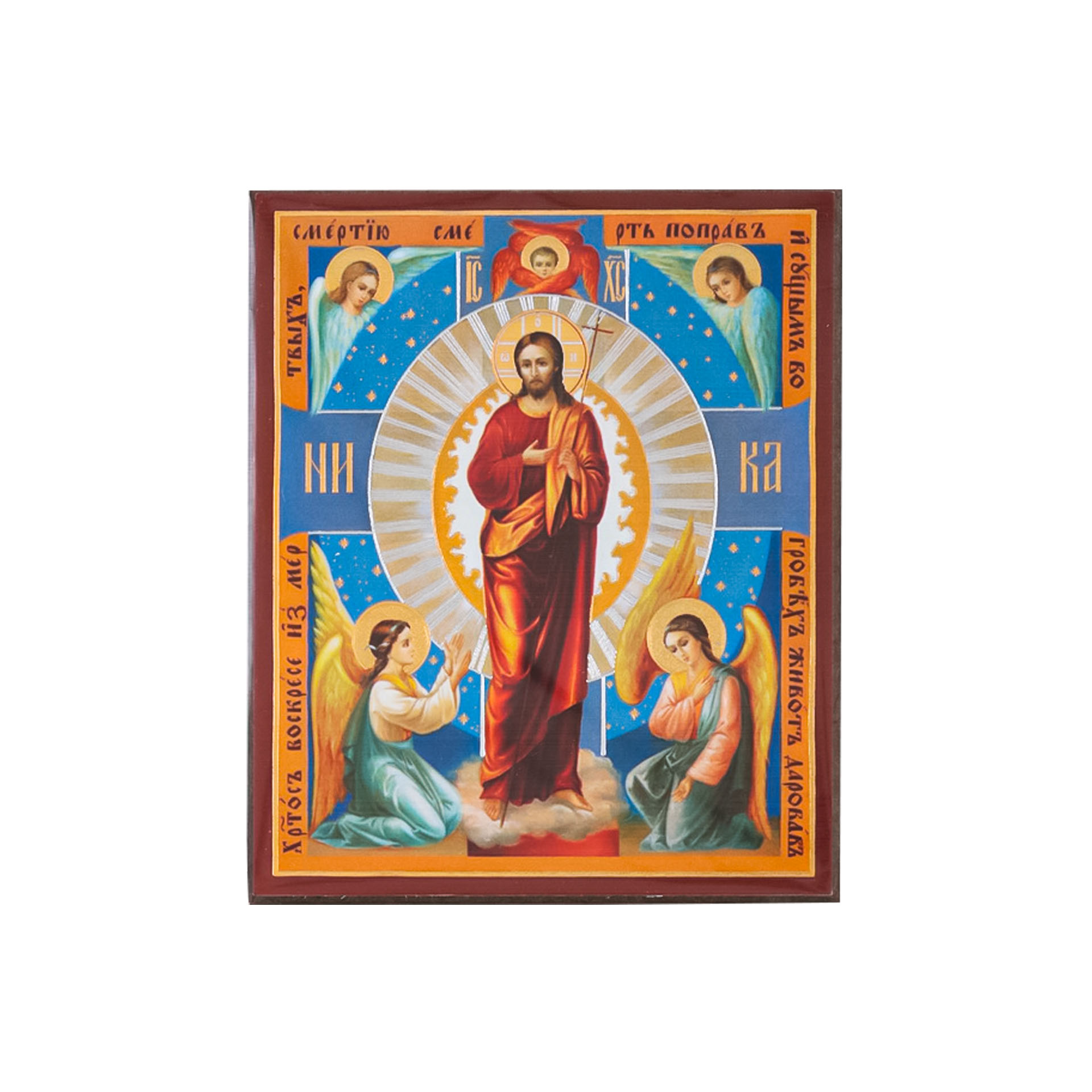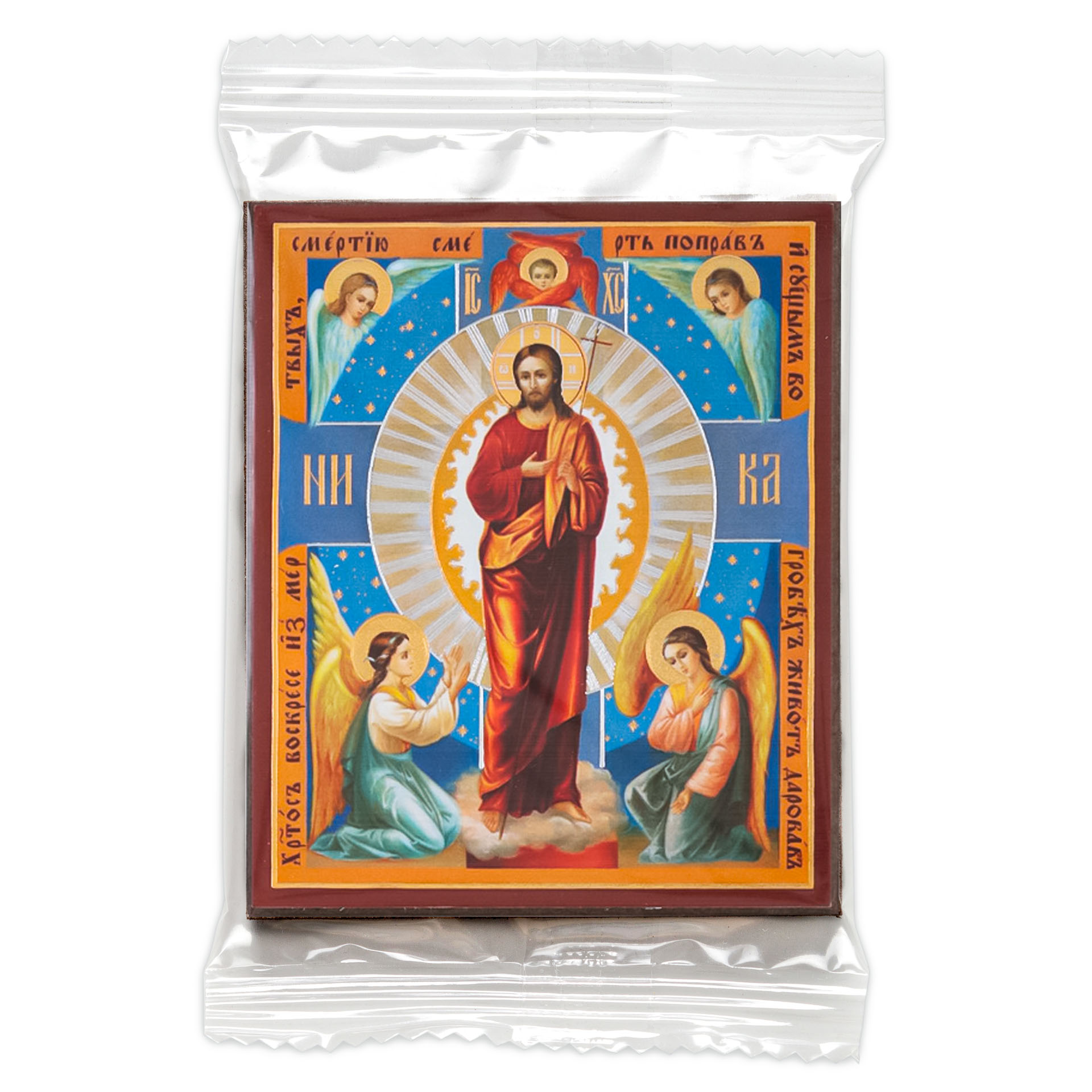 Икона на деревянном планшете 6х9 двойное тиснение, аннотация, упаковка Воскресение Христово 50